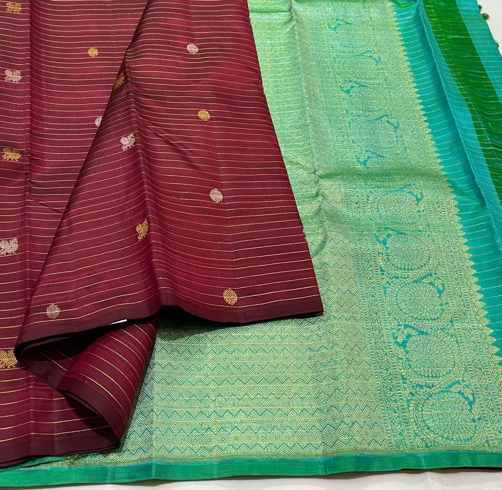 100 % pure kanchi silk saree handloom 1 G +++ pure zari quality with silk mark Tag