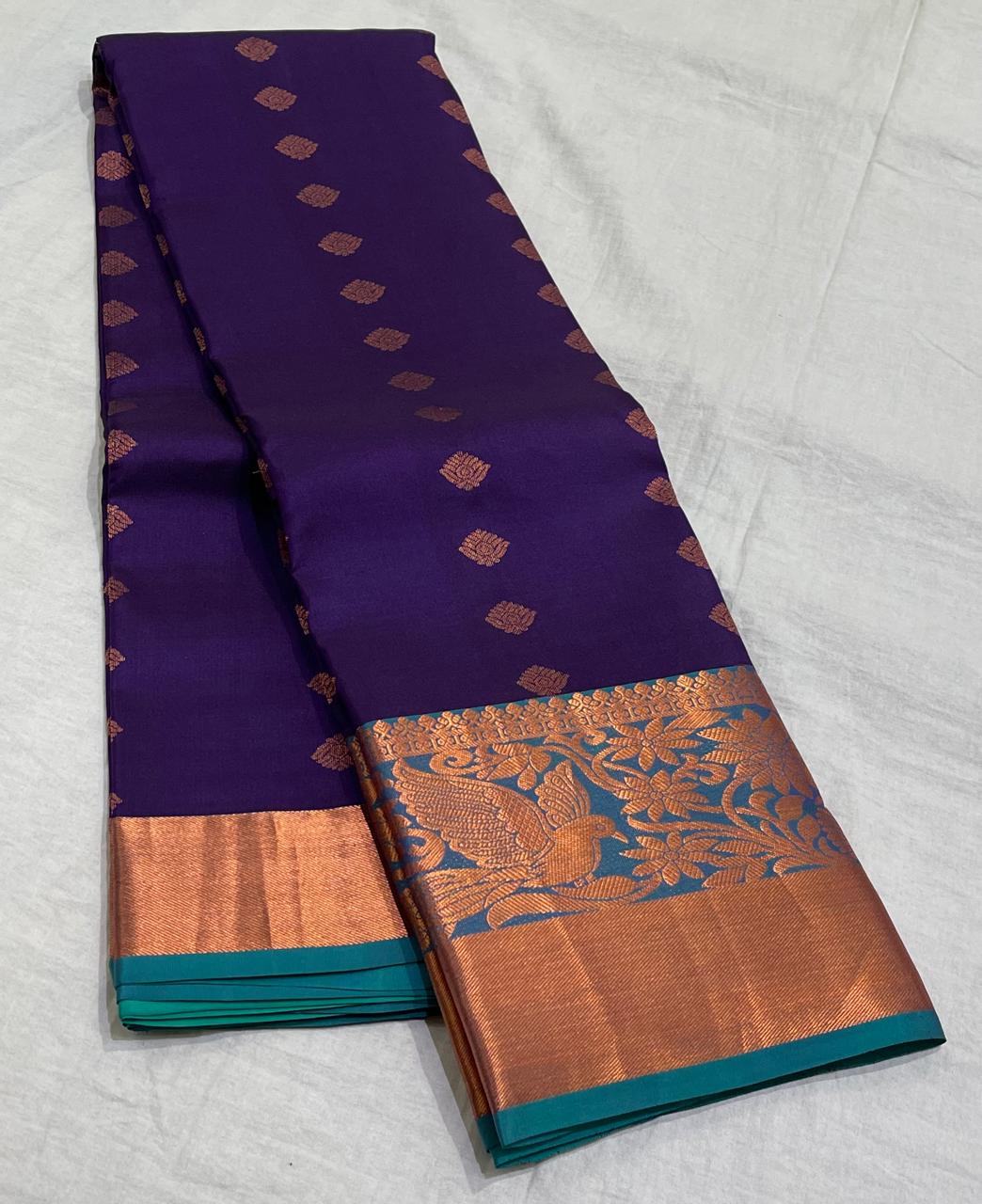 VOILET/TORQUISE BLUE COLOUR COMBITION PURE KANCHI SILK SAREE