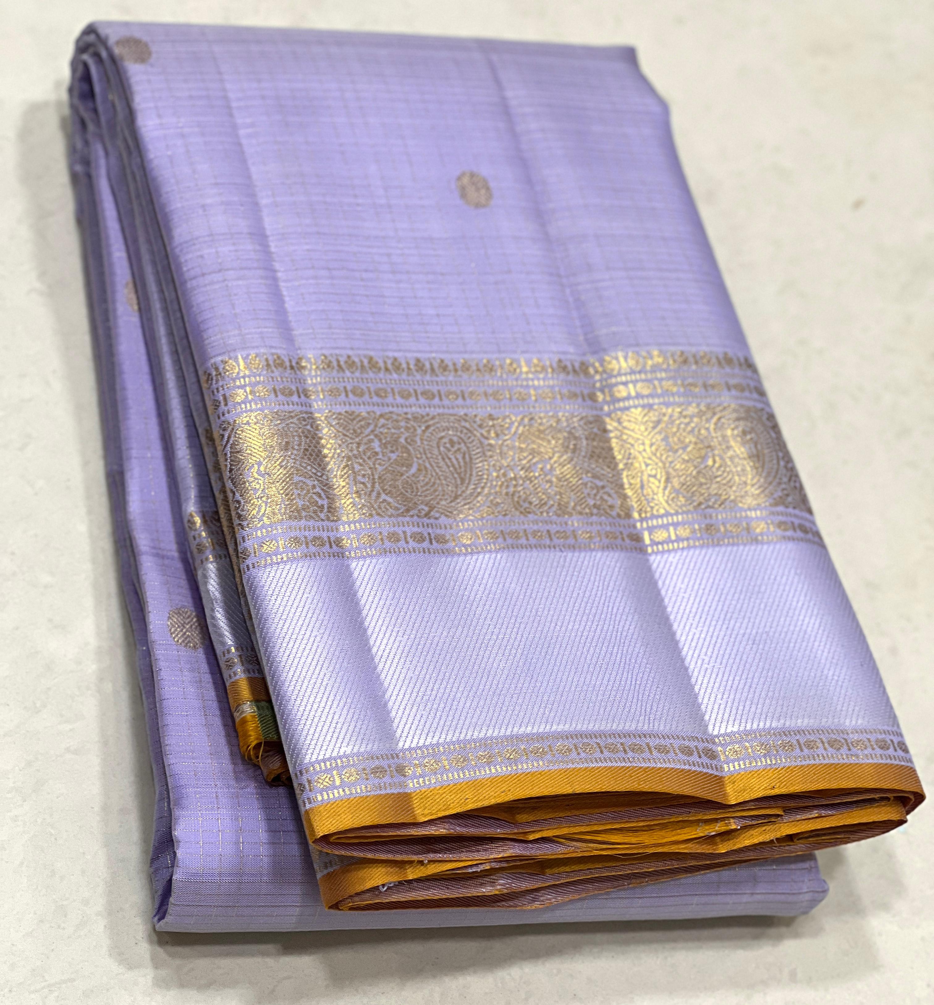LAVENDER/MUSTARD YELLOW COLOUR COMBITION PURE KANCHI SILK SAREE