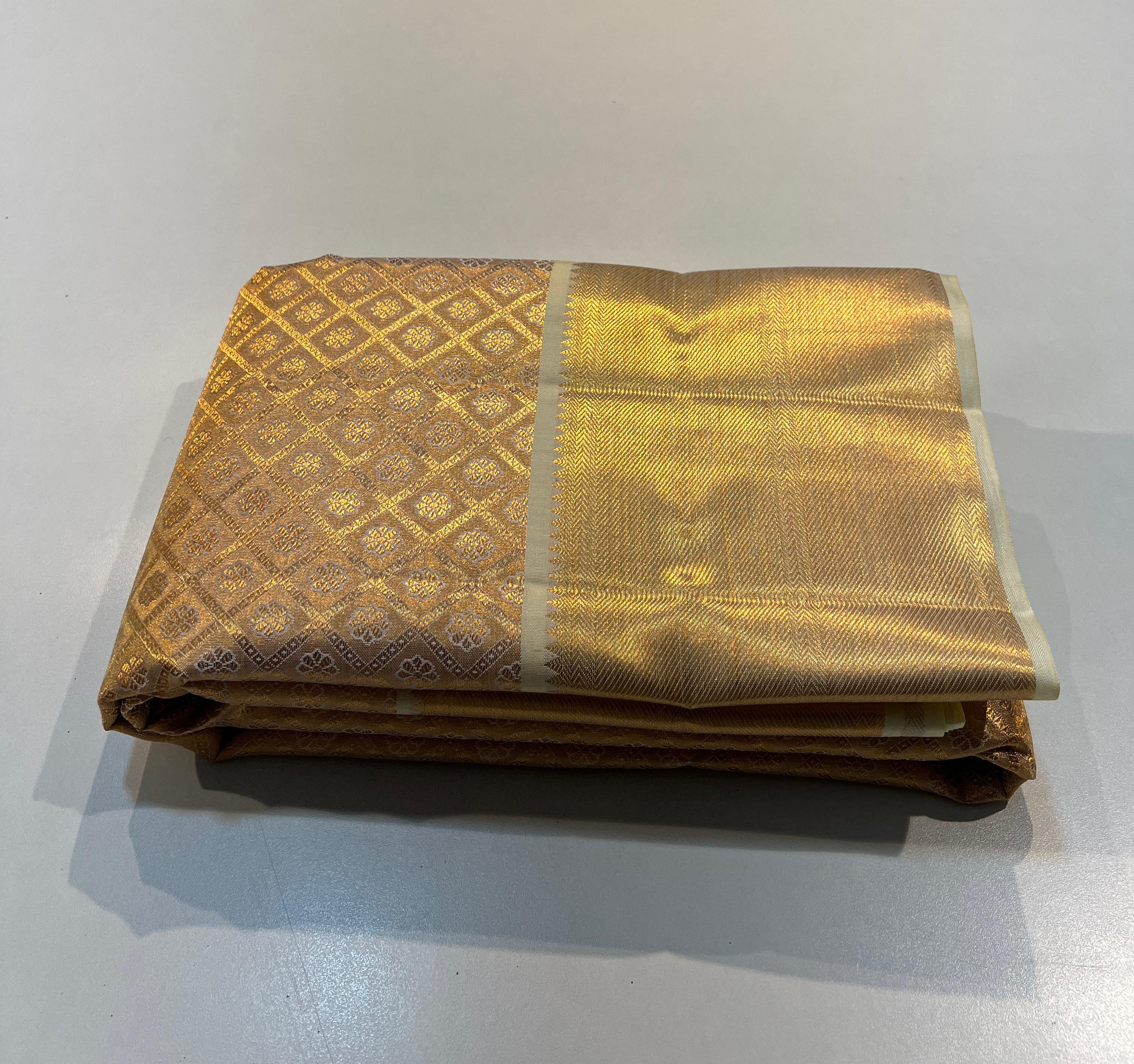 WHITE GOLD COLOUR  ZARI BORDER COMBITION PURE KANCHI SILK SAREE
