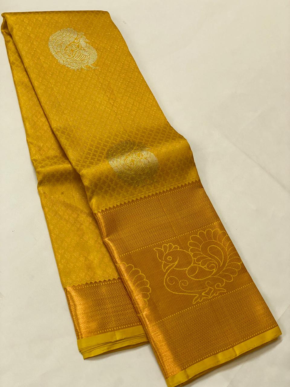 MUSTARD YELLOW ZARI KANCHI SILK SAREE