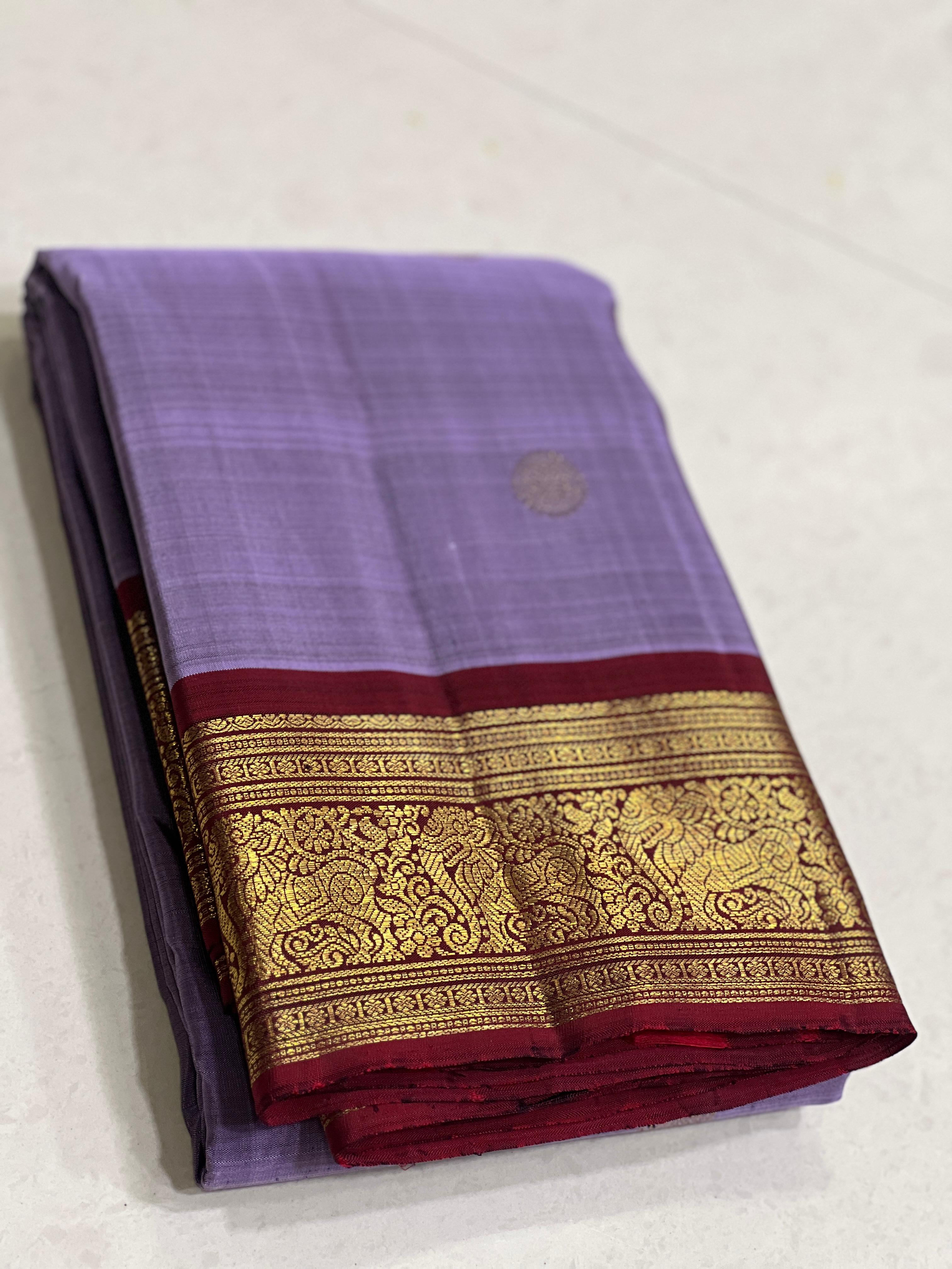 LAVENDER/MAROON COLOUR COMBITION PURE KANCHI SILK SAREE