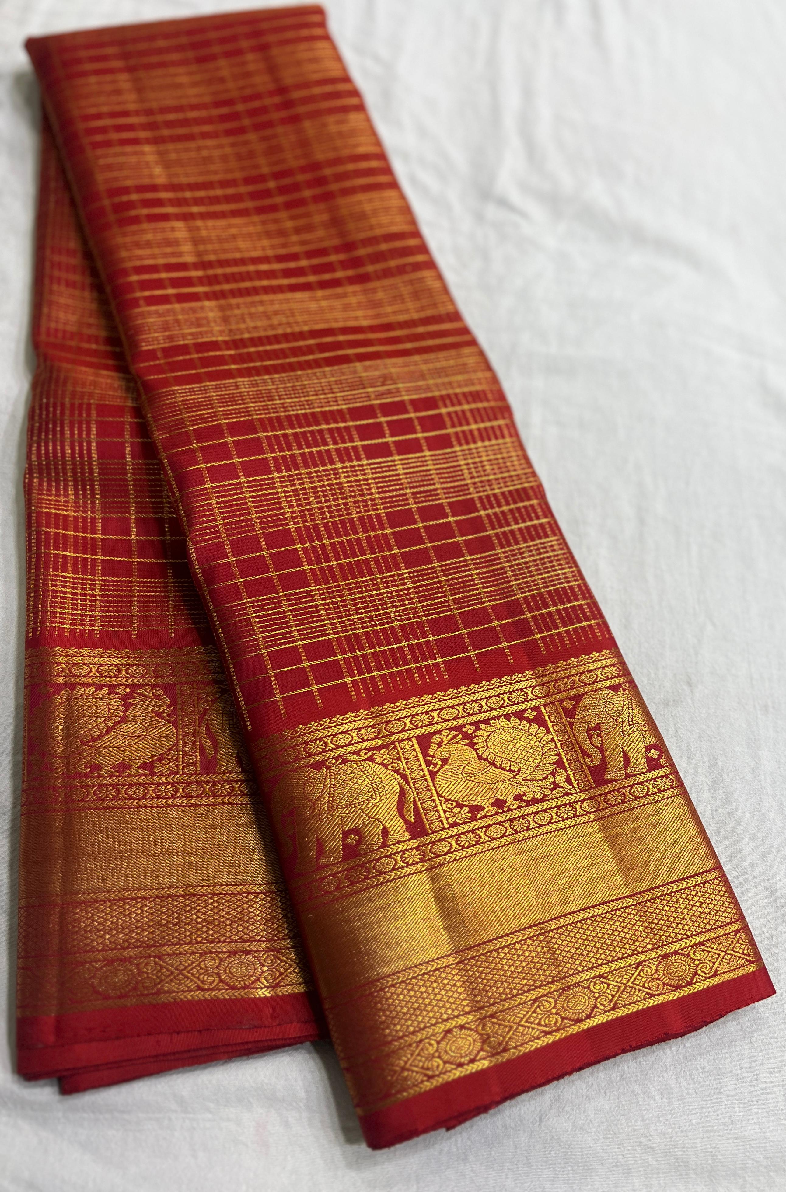 MAROONISH RED COLOUR  ZARI BORDER COMBITION PURE KANCHI SILK SAREE