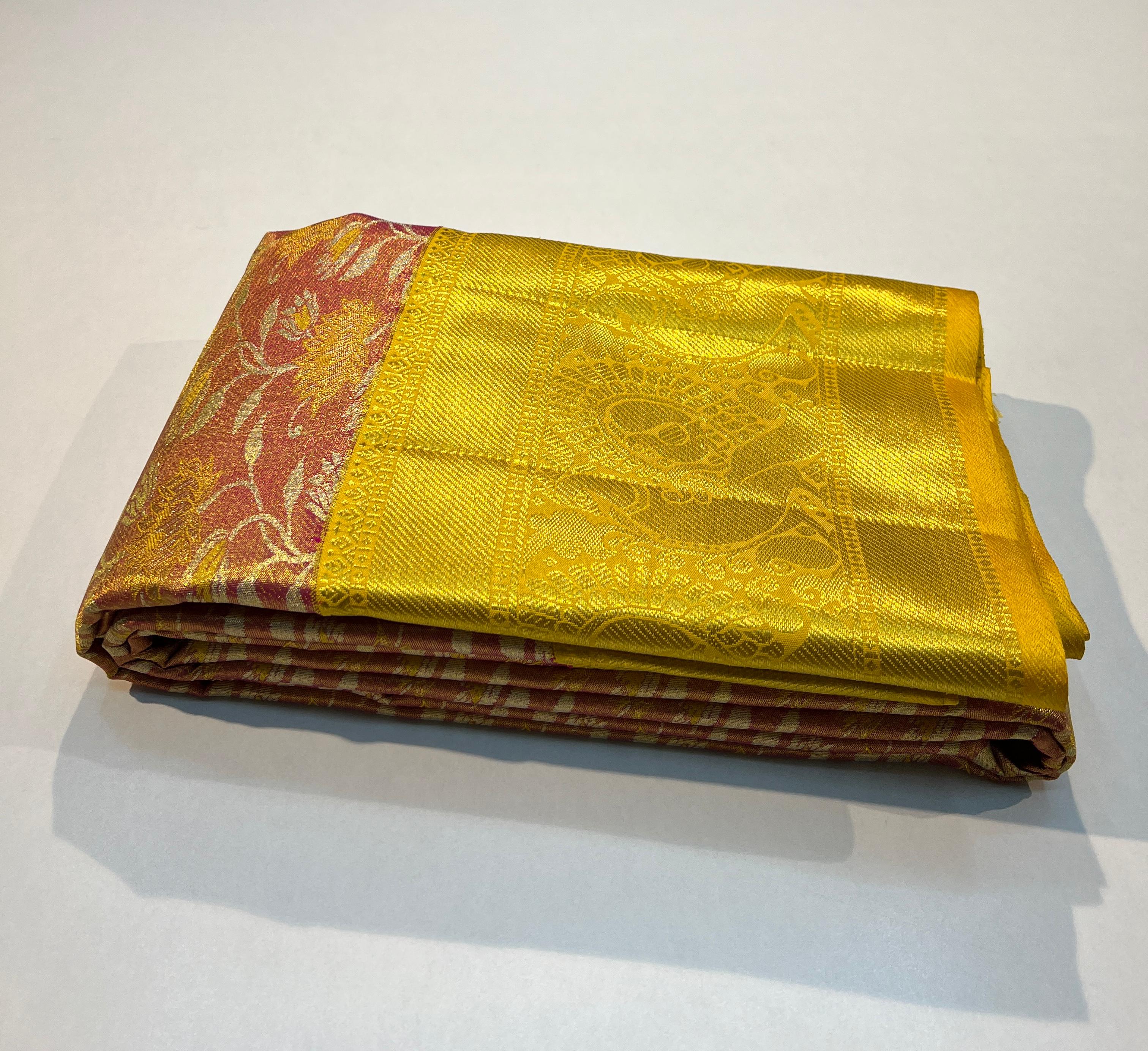 GOLD/RUST/SILVER/YELLOW COLOUR COMBINITION KANCHI SILK SAREE