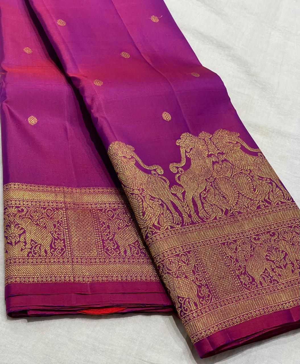 MAGENTA PINK BORDER COLOUR COMBITION PURE KANCHI SILK SAREE