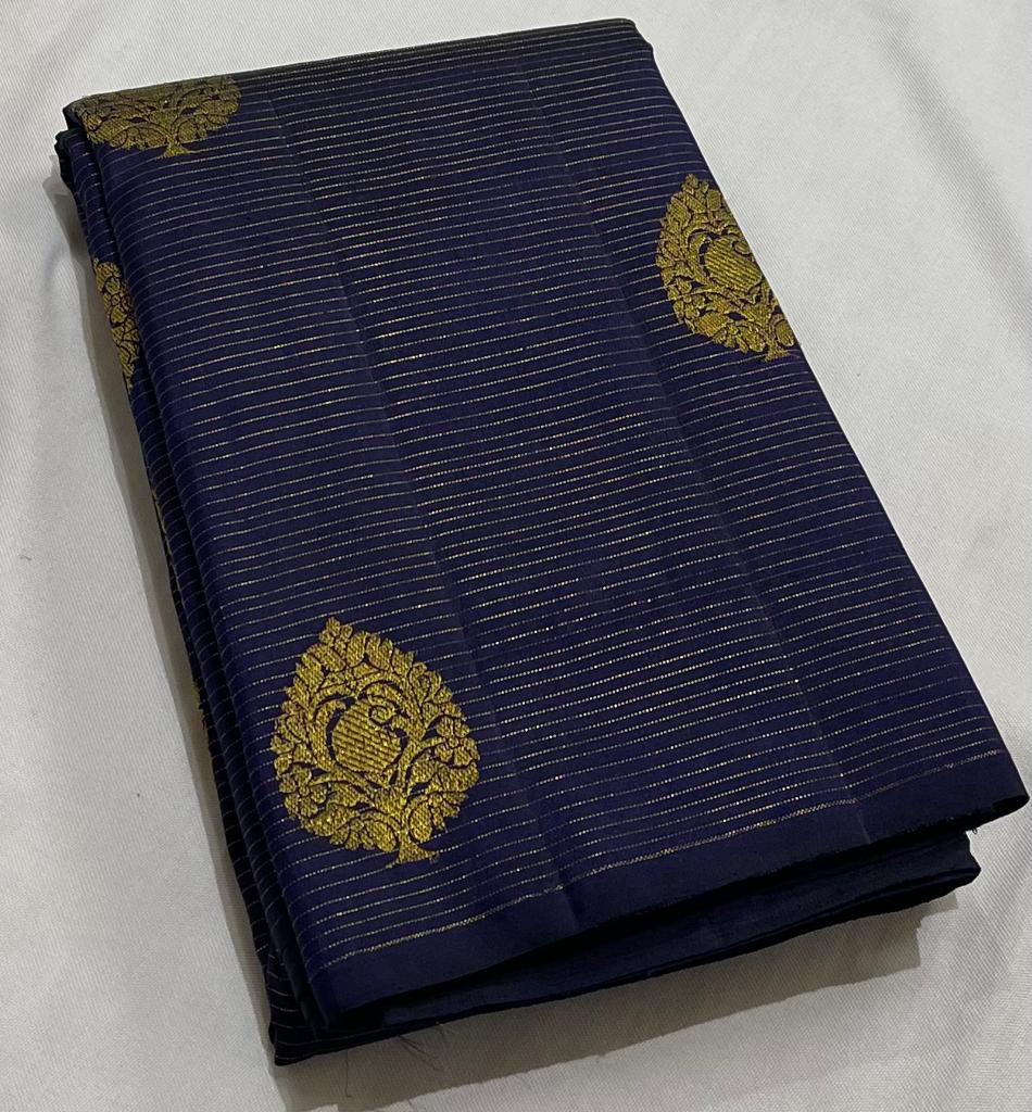 NAVY BLUE ZARI LINE BORDERLESS SAREE