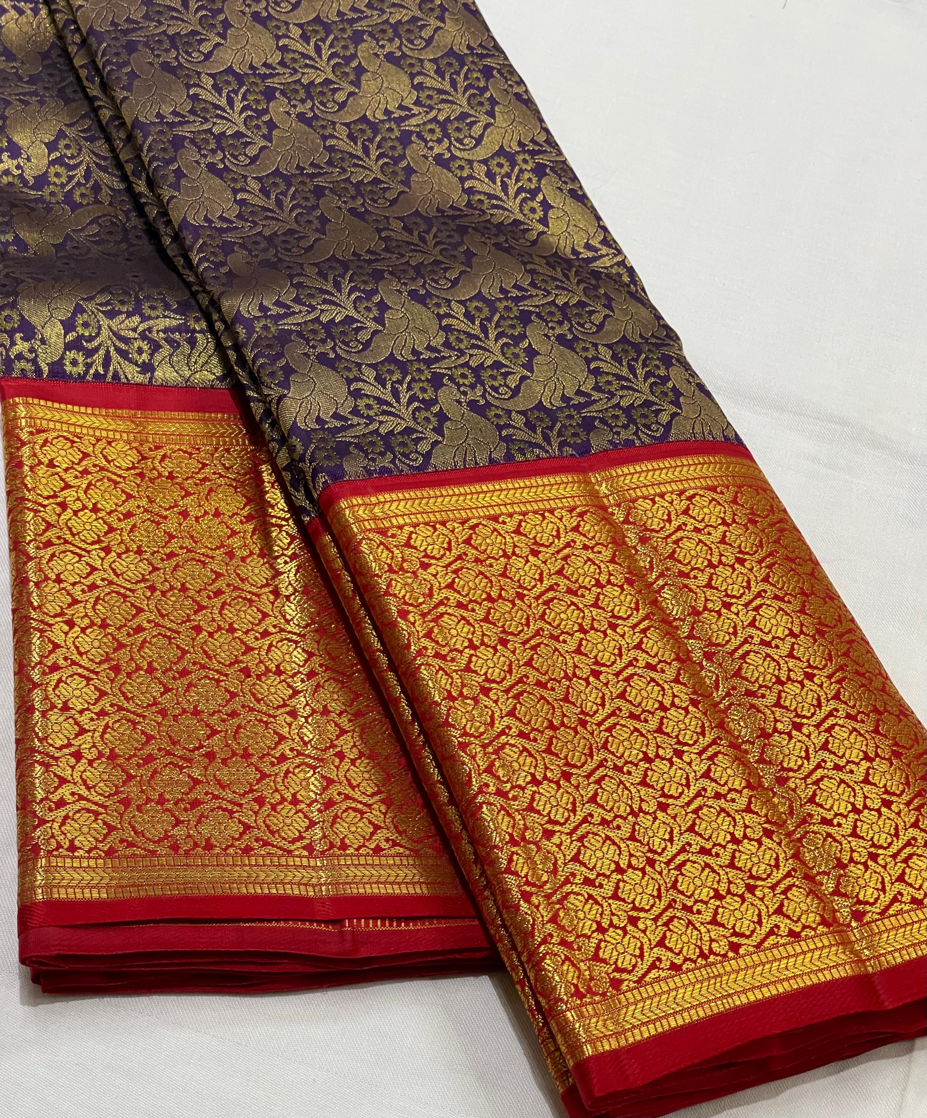 NAVY BLUE/RED BORDER COMBITION PURE KANCHI SILK SAREE