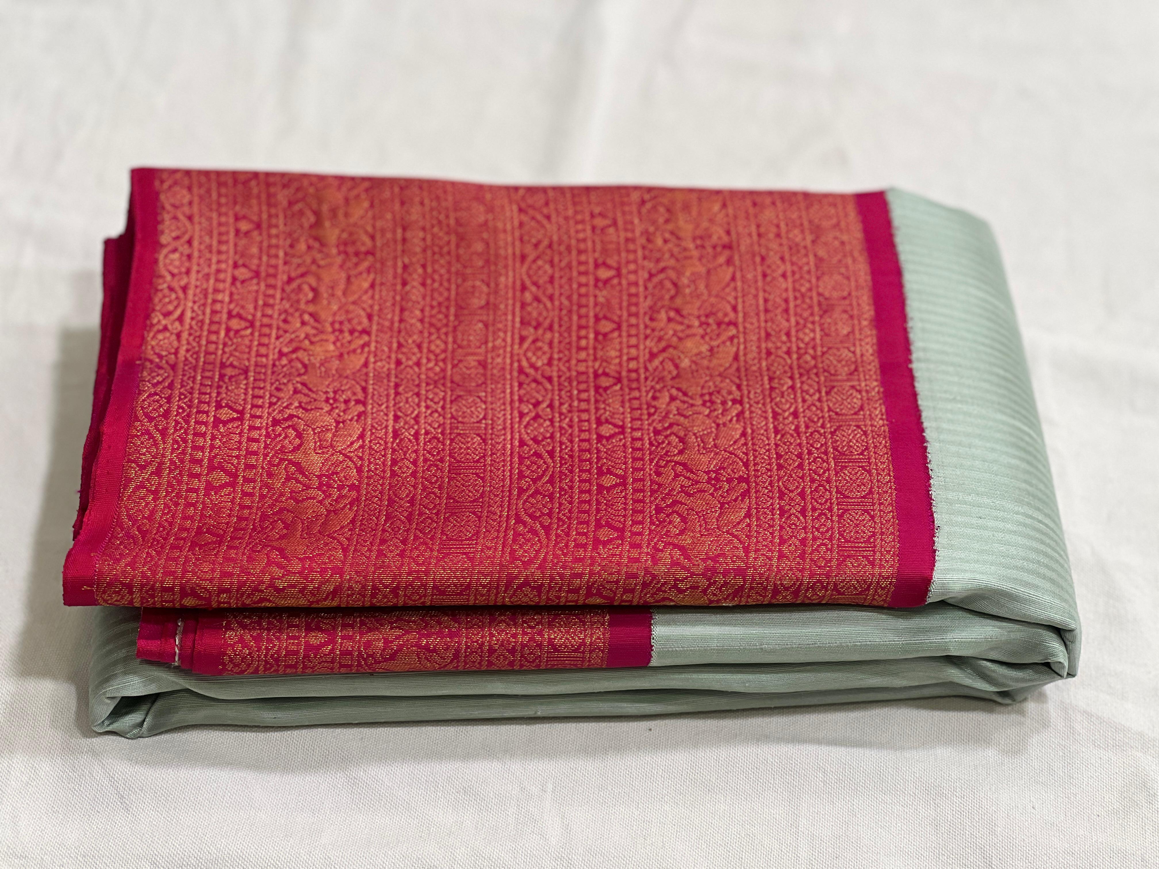 LITE PISTA/PINK COMBITION PURE KANCHI SILK SAREE