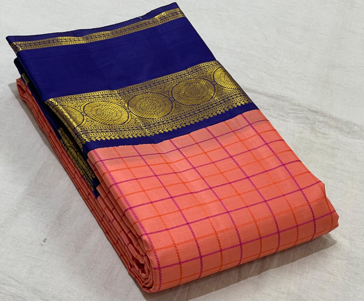 LITE ORANGE/NAVY BLUE BORDER COLOUR COMBITION PURE KANCHI SILK SAREE