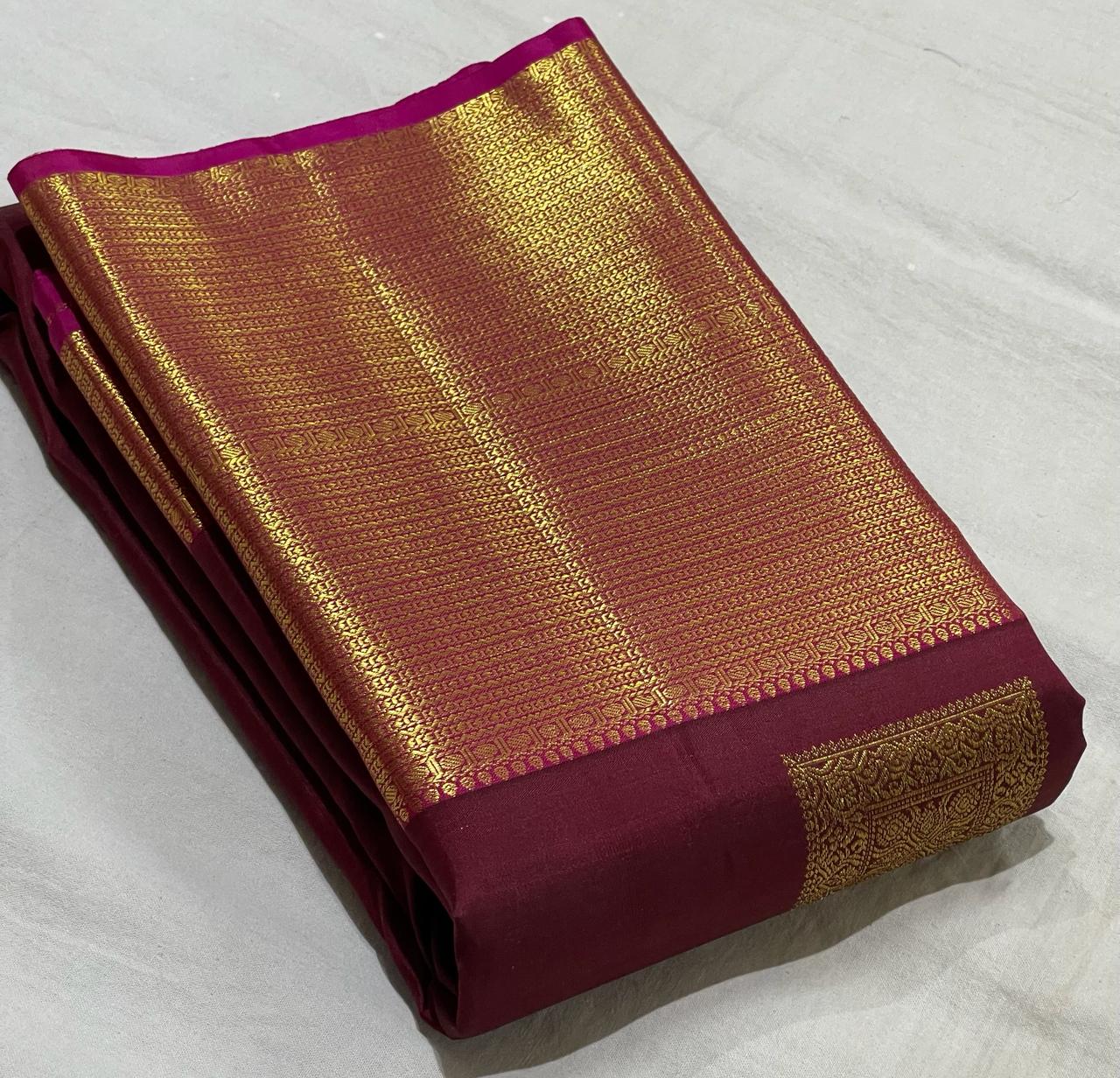 MAROON/PINK  COLOUR PURE KANCHI SILK SAREE