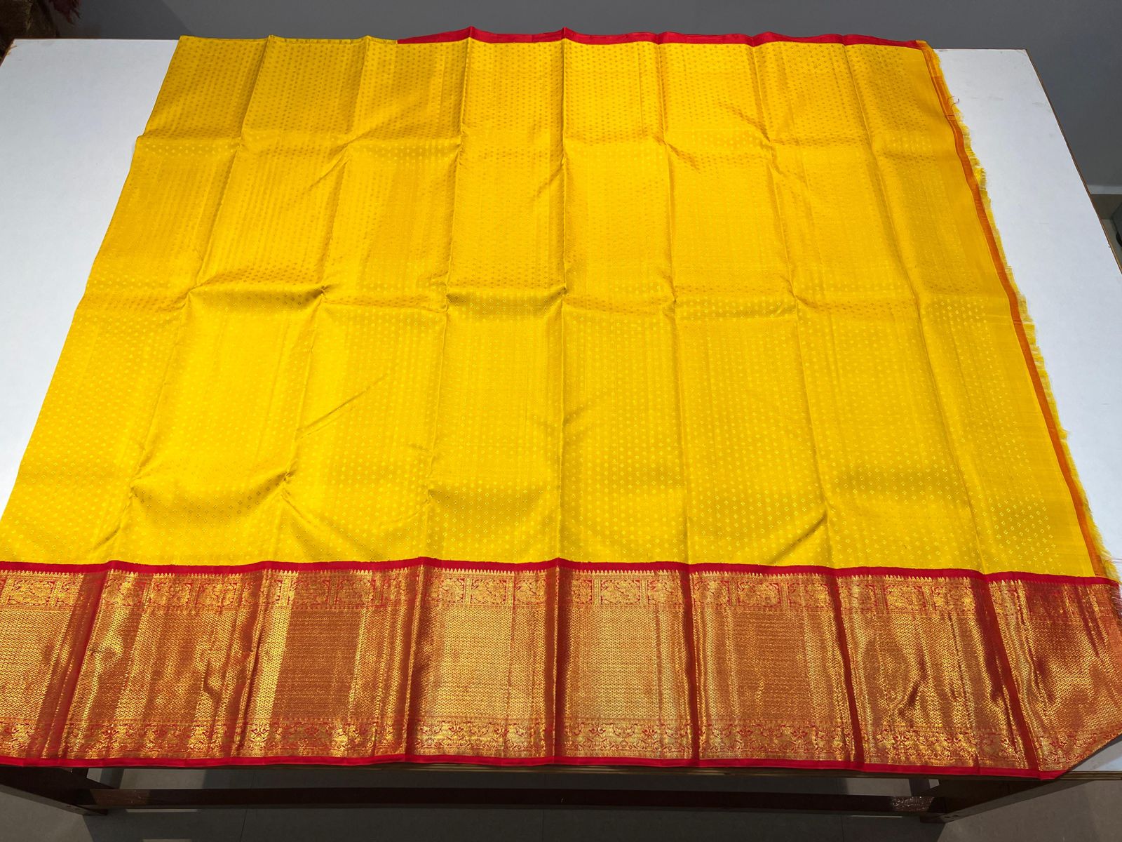 LEMON YELLOW/RED COLOUR KANCHI SILK SAREE