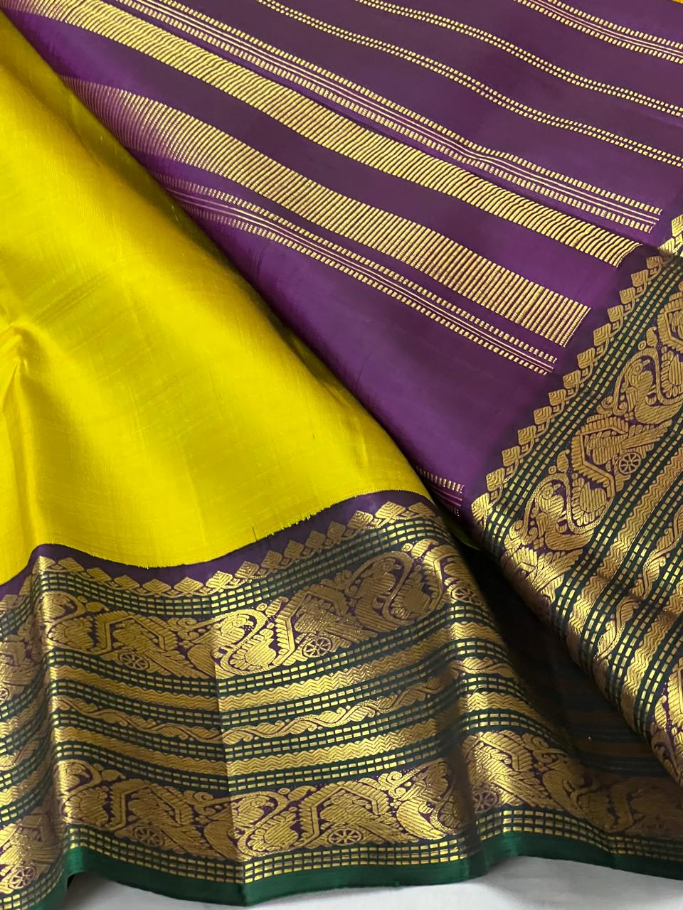 LEMON YELLOW /PURPLE KANCHI SILK SAREE