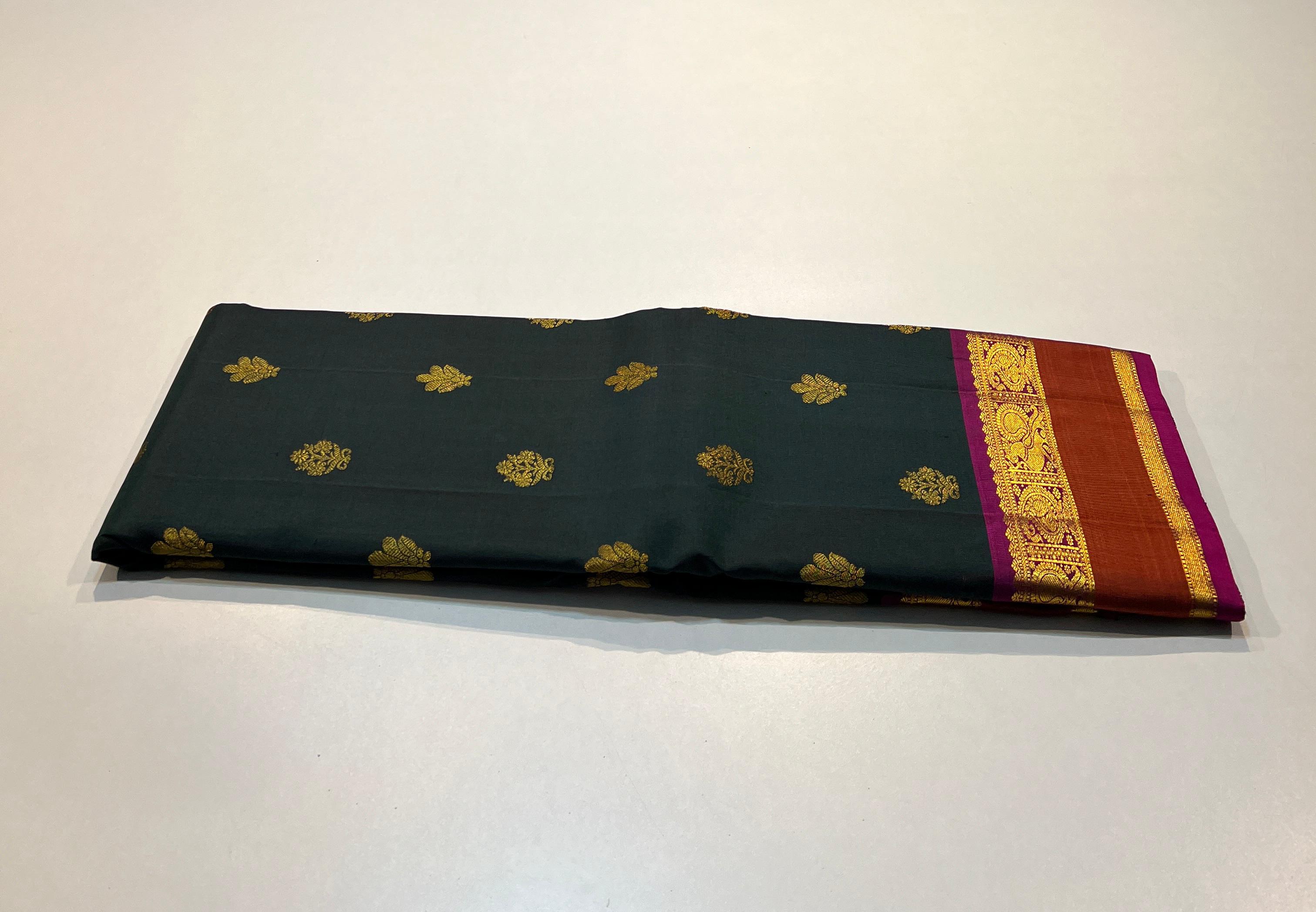 BOTTLE GREEN/ORANGE/RED COLOUR COMBITION PURE KANCHI SILK SAREE