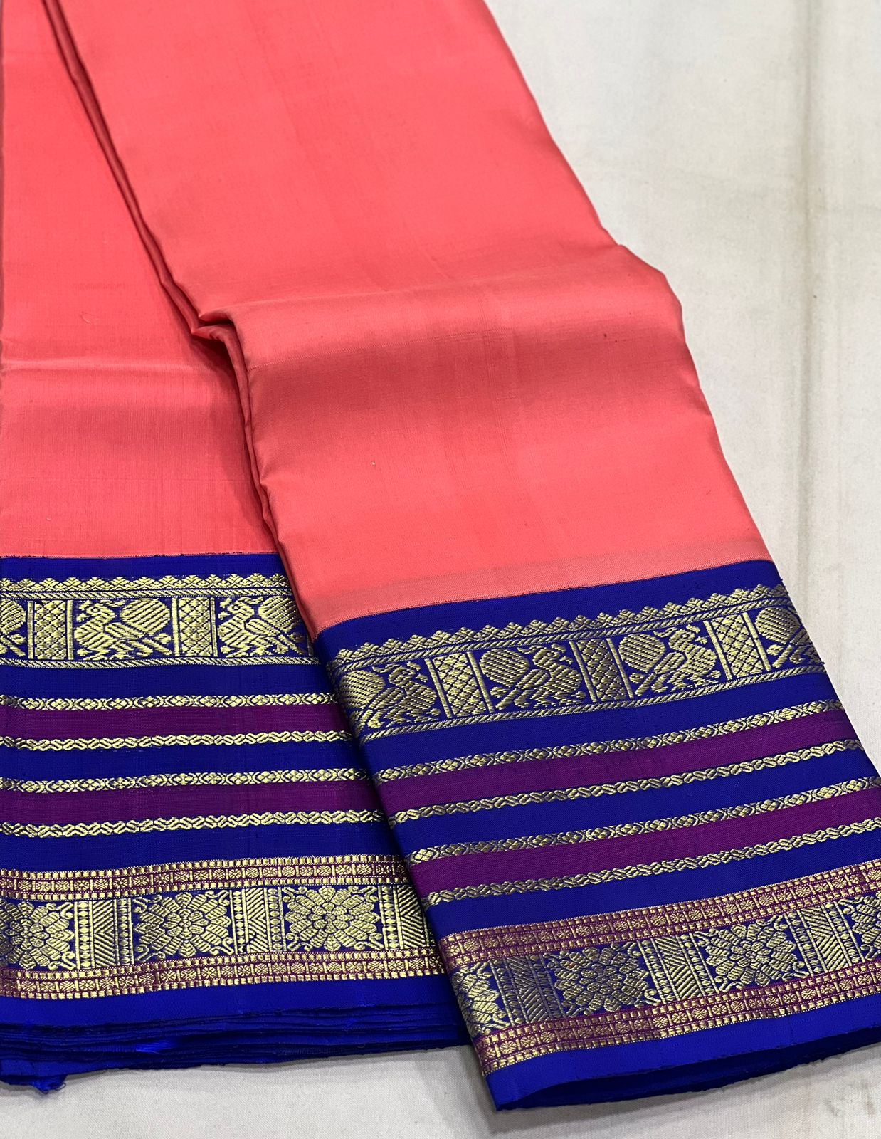 LITE ORANGE/ROYAL BLUE  BORDER COMBITION PURE KANCHI SILK SAREE