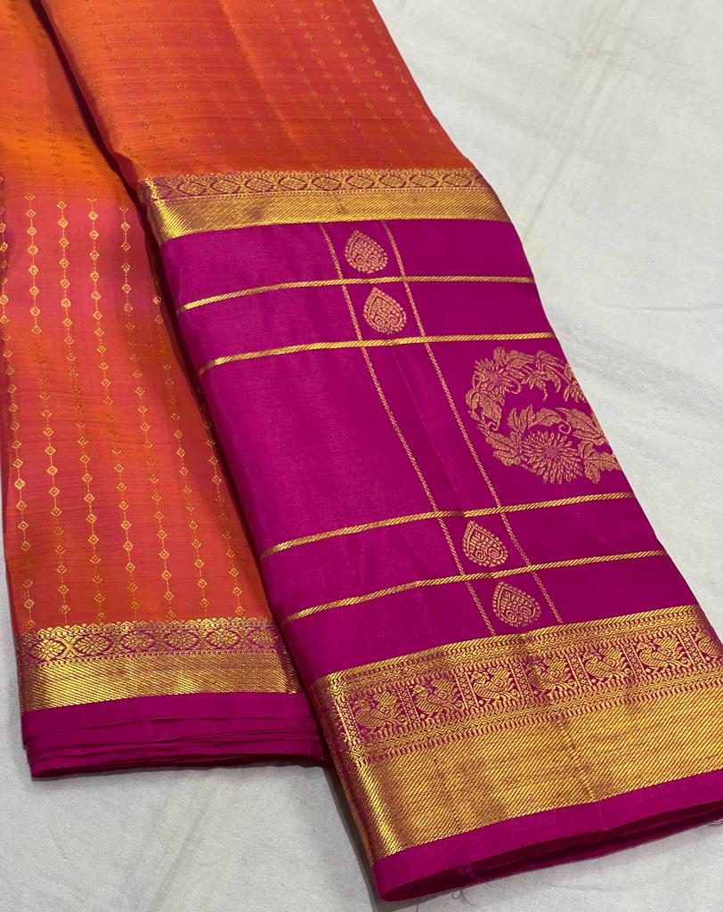 ORANGE/PINK COLOUR PURE KANCHI SILK SAREE