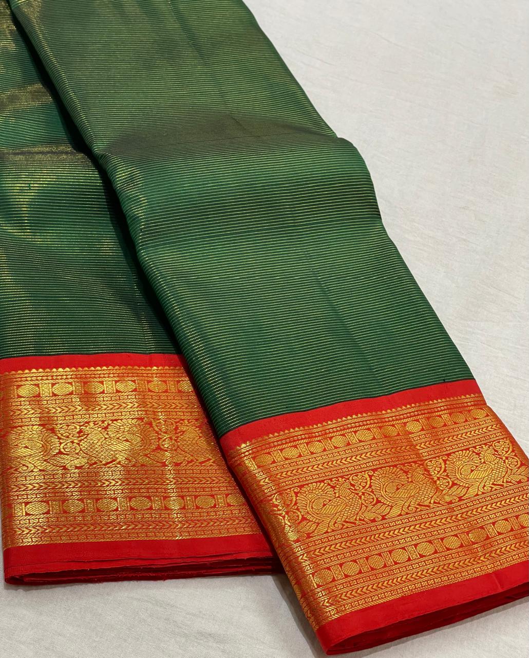 EMERALD GREEN / RED KANCHI SILk SAREES