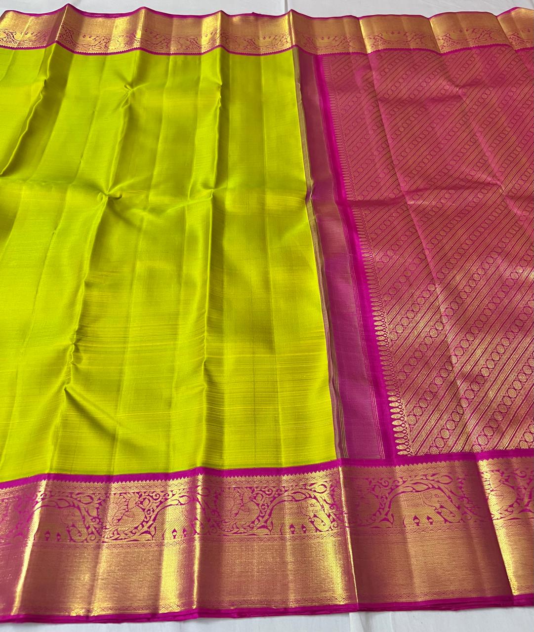 PARROT GREEN / PINK ZARI KANCHI SILK SAREE