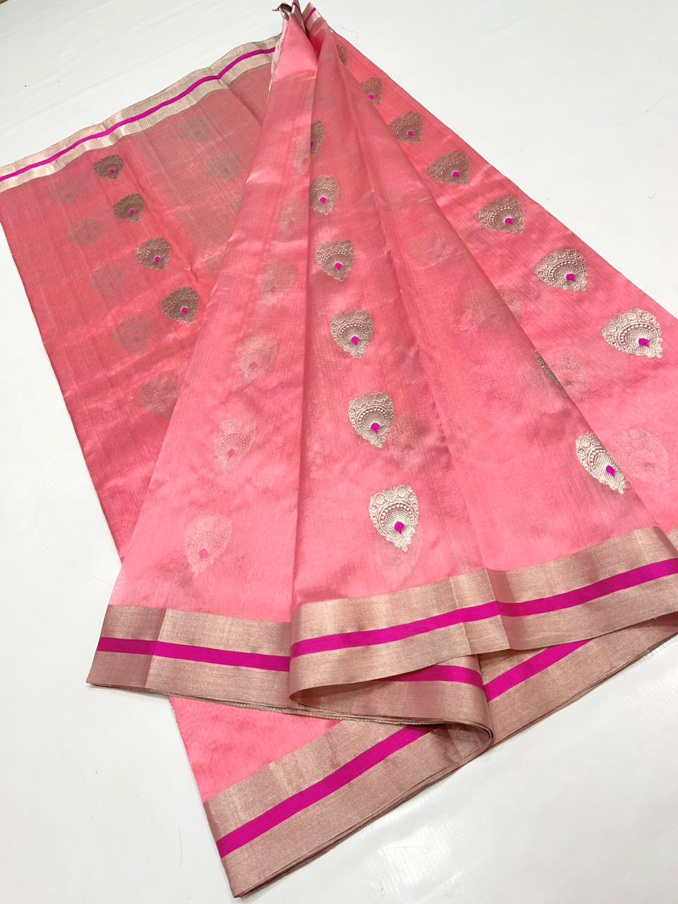 PURE CHANDERI SILK , ZARI BORDER SAREE