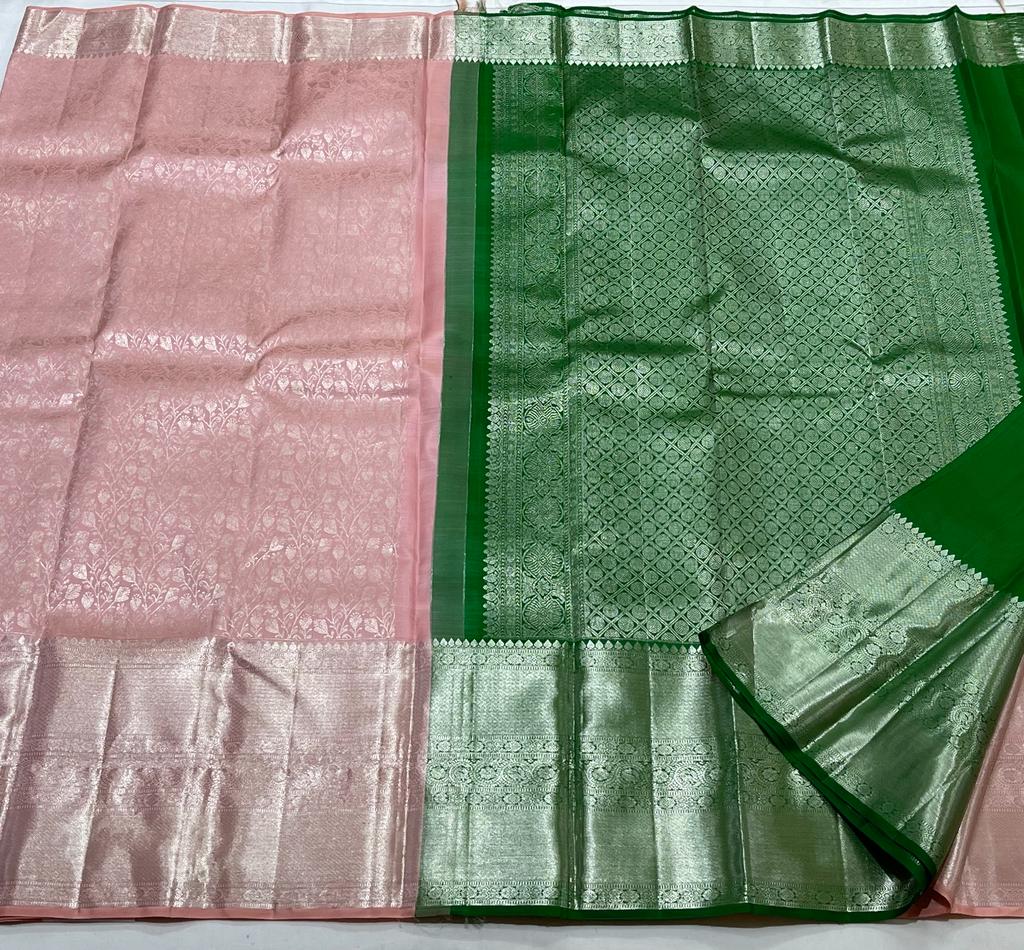 PEACH / GREEN KANCHI SAREE