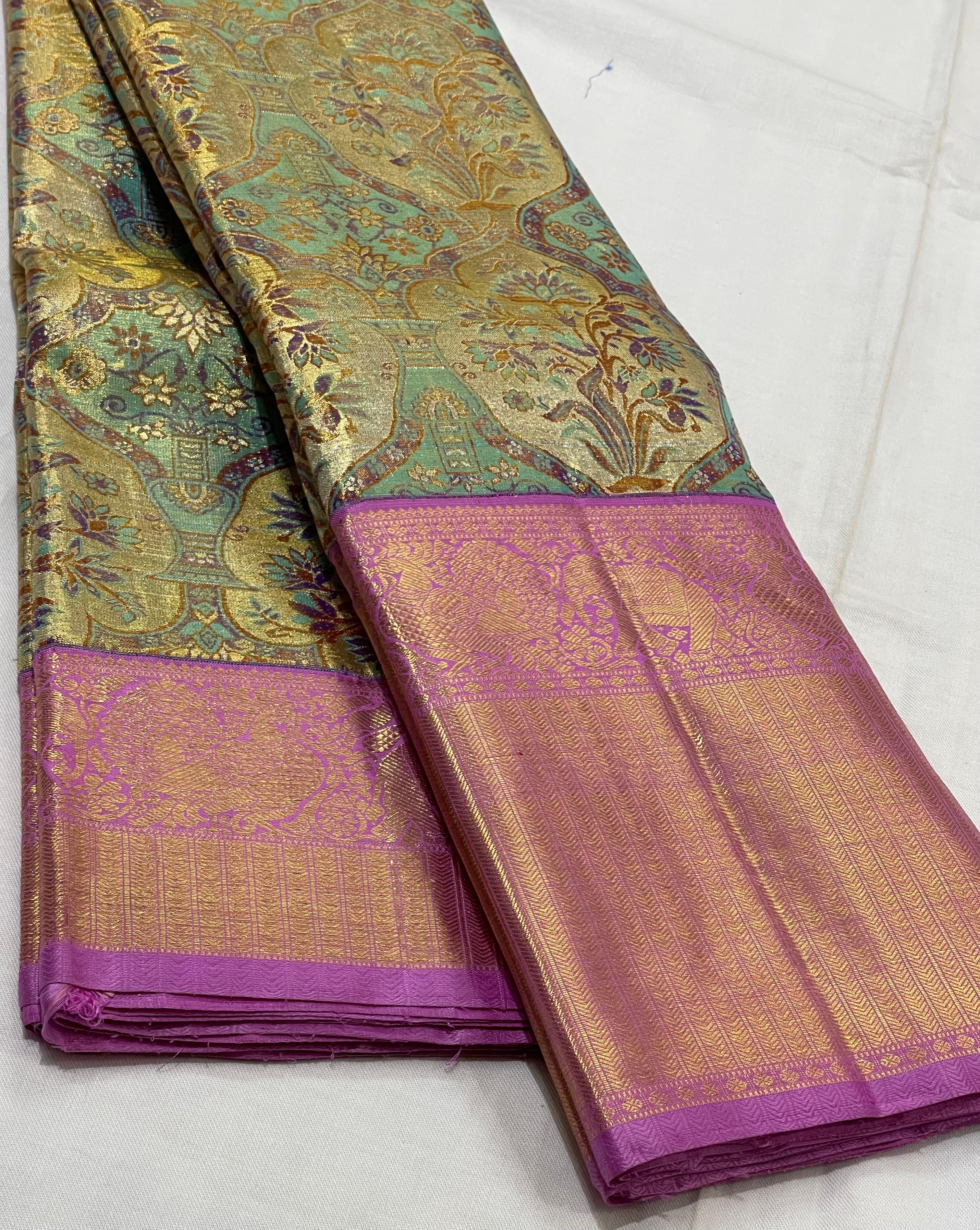 LITE SEA GREEN/LAVENDER BORDER COMBITION PURE KANCHI SILK SAREE