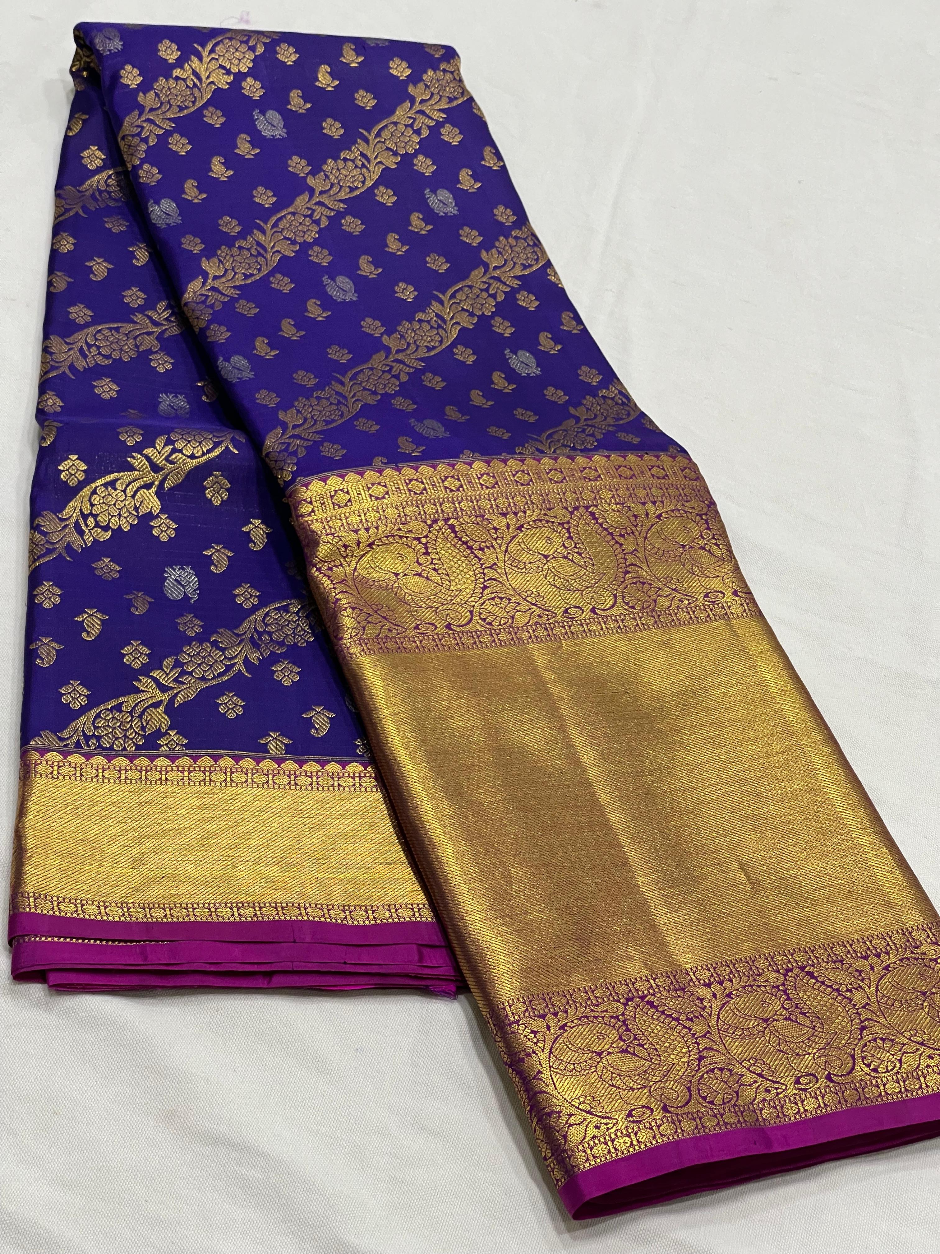 VOILET/PINK COLOUR ZARI COMBINITION PURE SILK SAREES