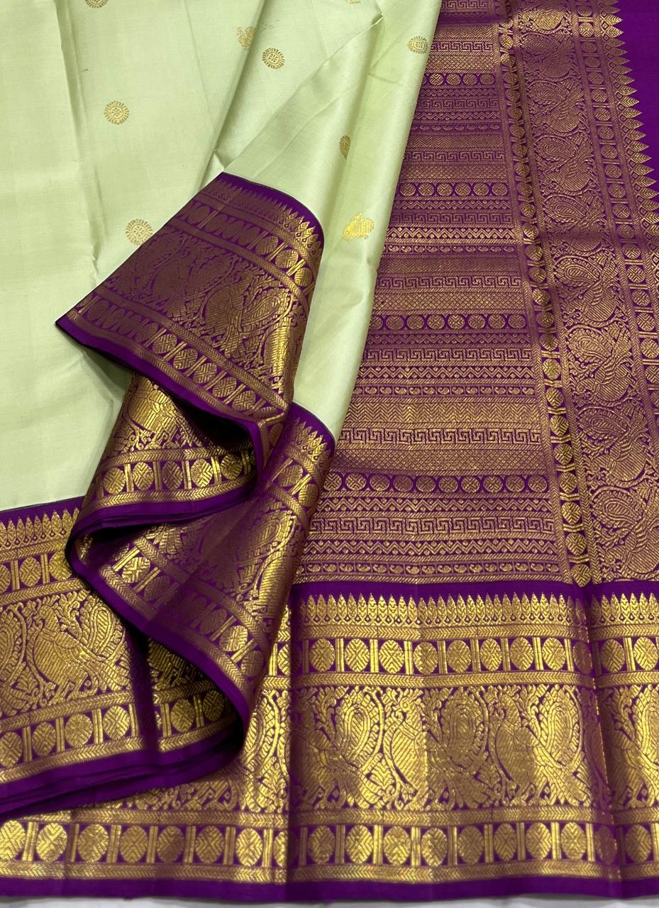 LITE PISTA/PURPLE  COMBITION PURE KANCHI SILK SAREE
