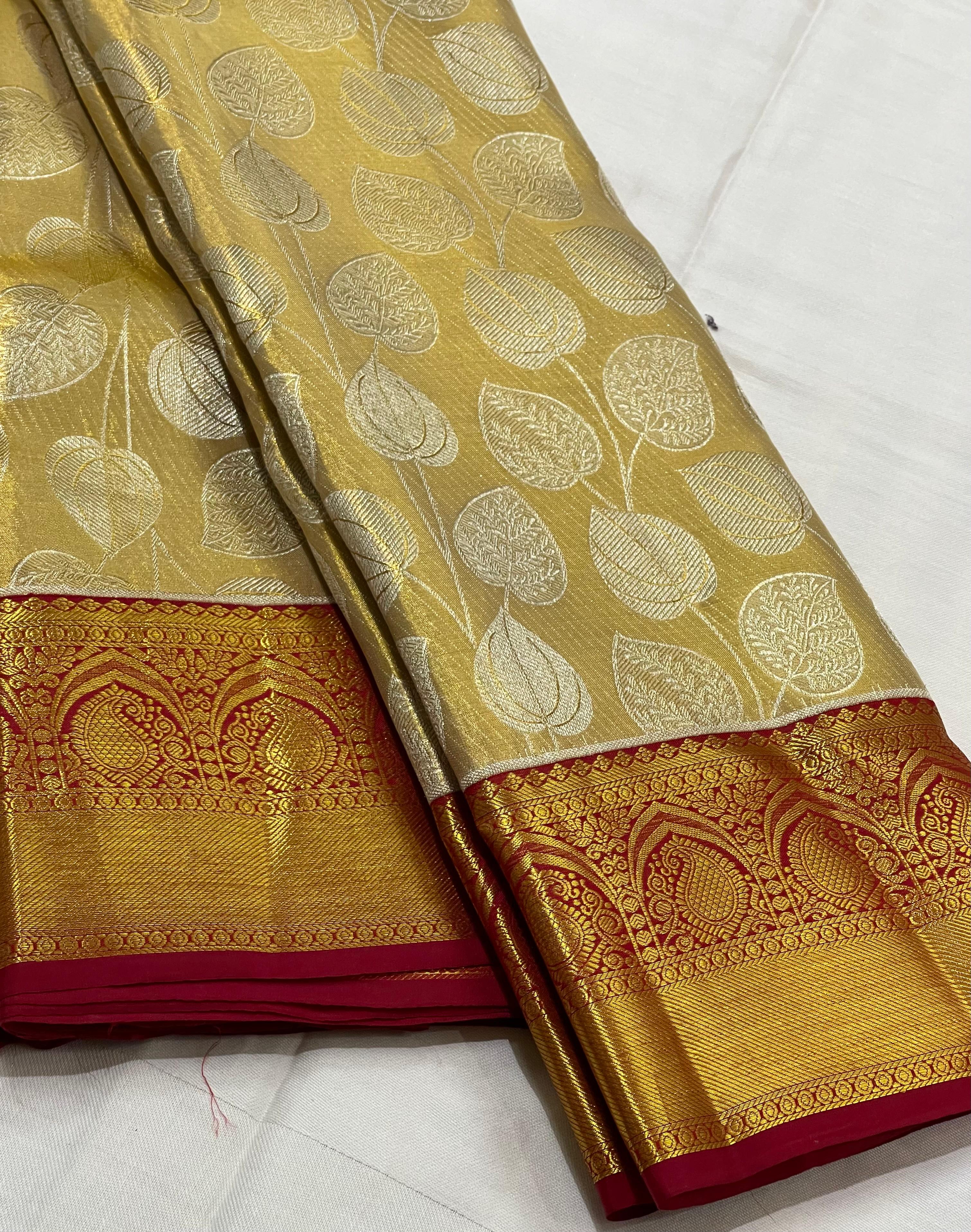 GOLDEN YELLOW/MAROON BORDER COMBITION PURE KANCHI SILK SAREE
