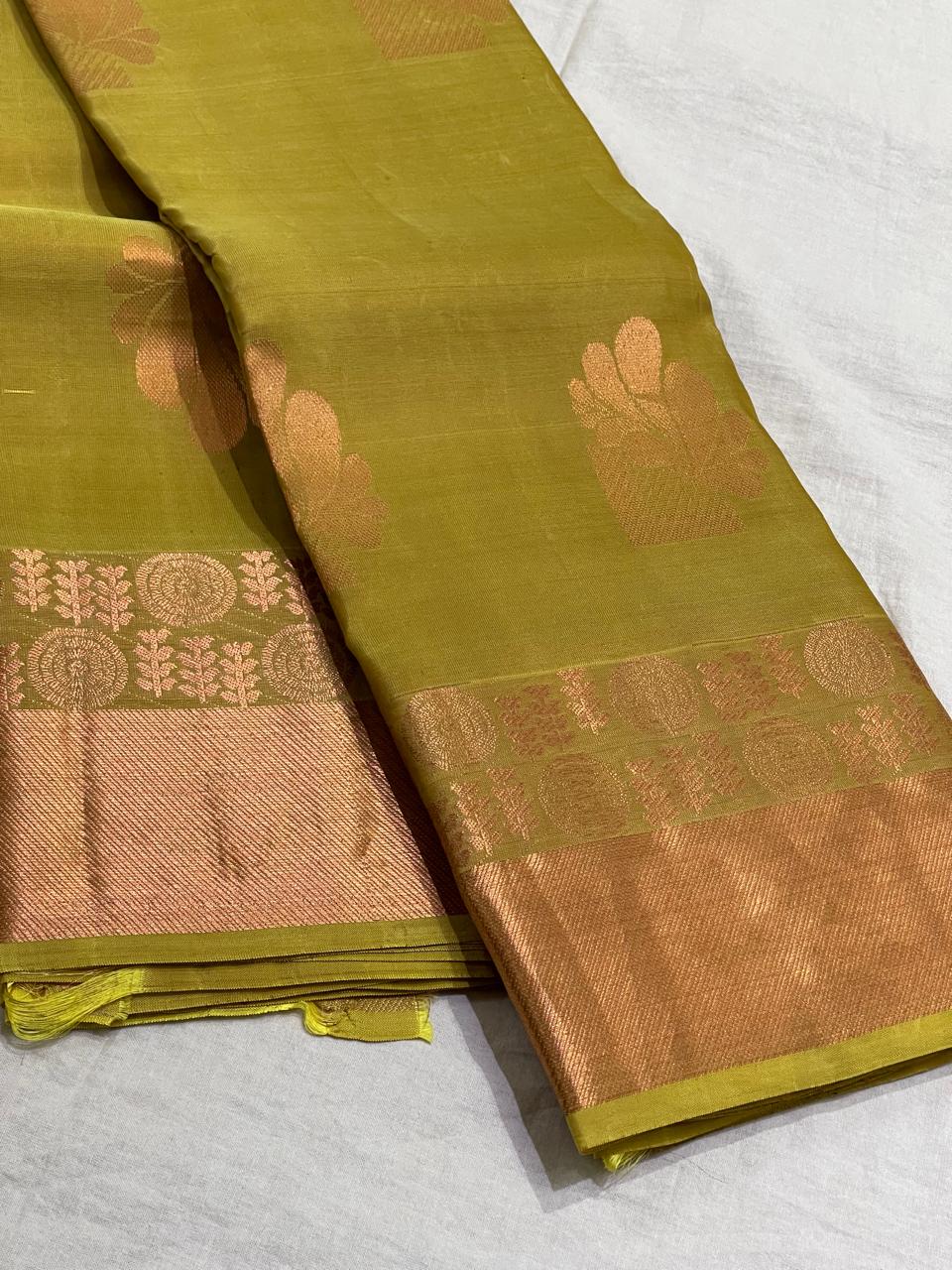 MEHANDI GREEN COLOUR COMBITION PURE KANCHI SILK SAREE
