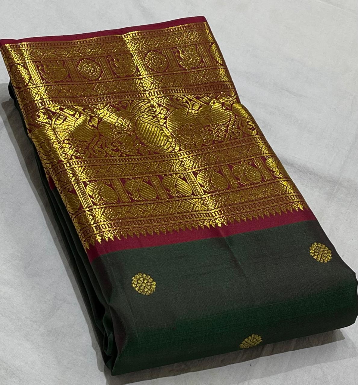 BOTTLE GREEN/MAROON COLOUR COMBITION PURE KANCHI SILK SAREE