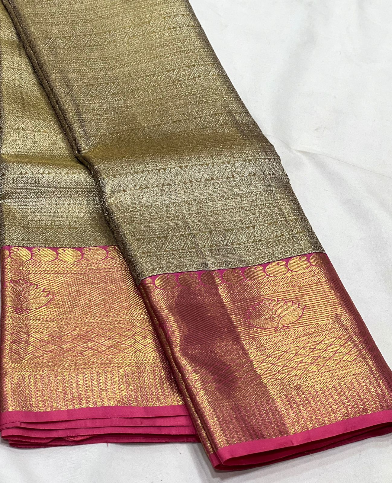LITE GREEN/PINK COLOUR COMBITION PURE KANCHI SILK SAREE