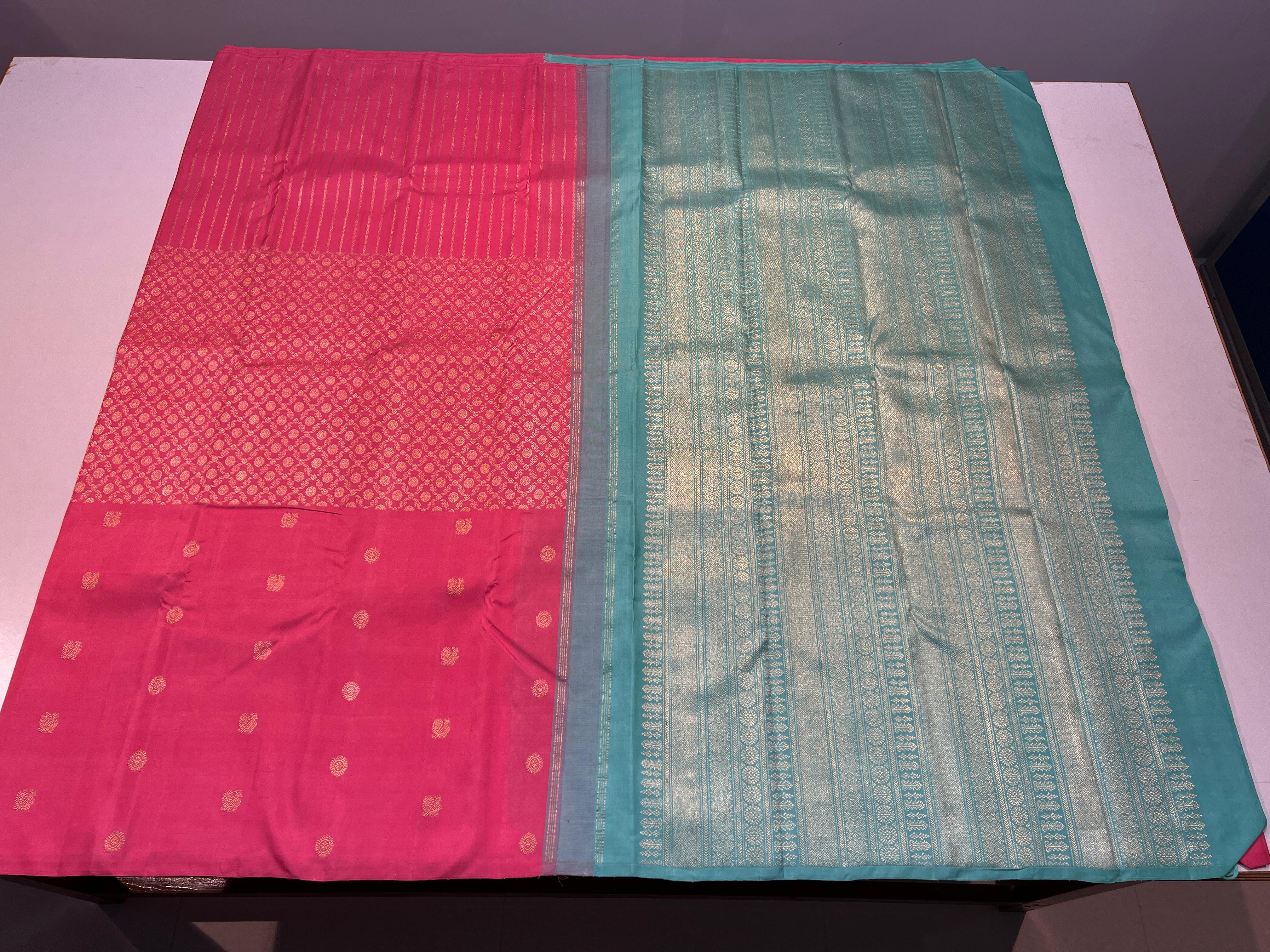 PASTEL PINK/TURQUOISE GREEN KANCHI SILK SAREE