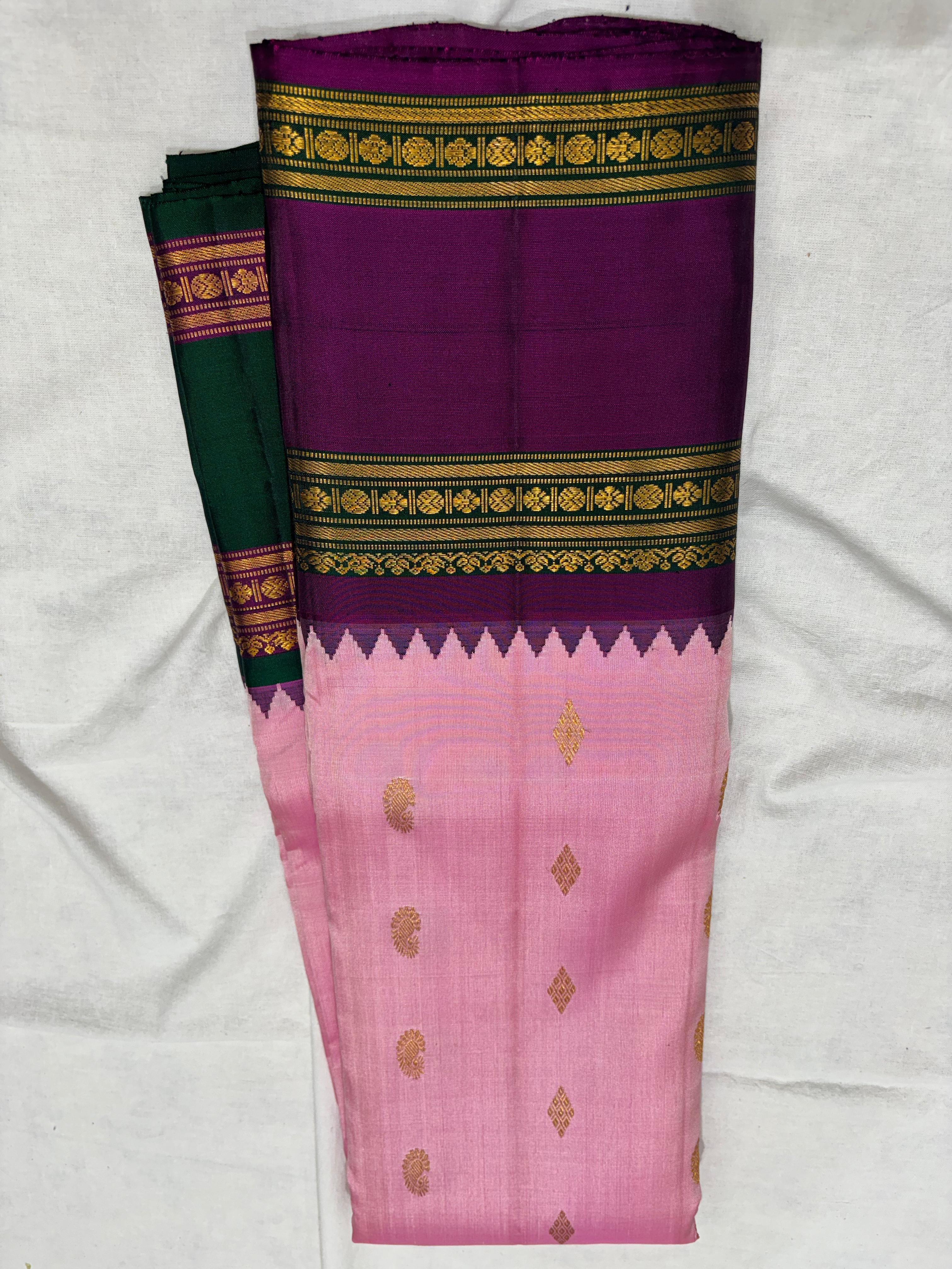 PINK COLOUR & PURPLE\GREEN COMBITION BORDER GADWAL SILK SAREE