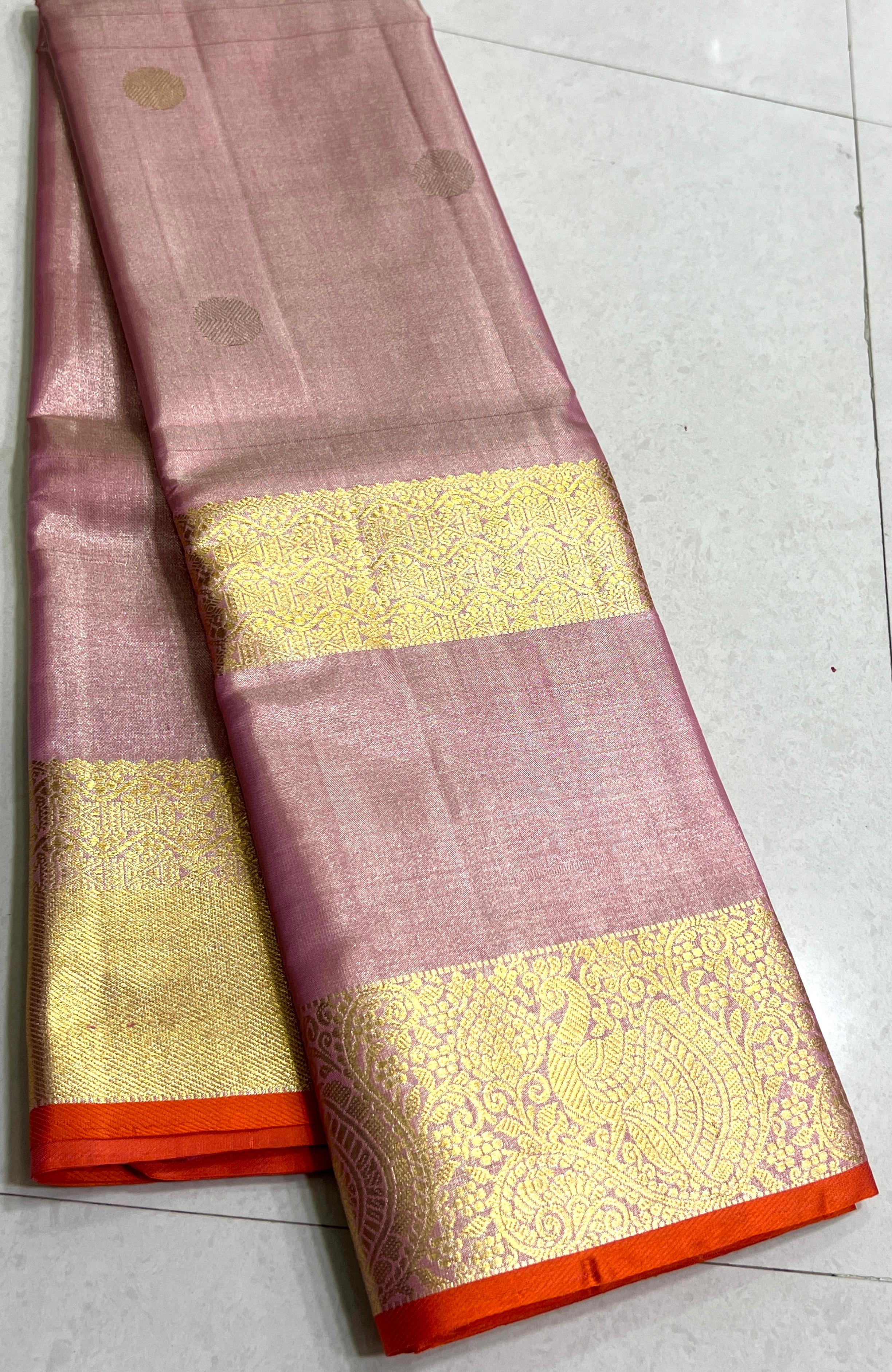 ONION PINK/   COLOUR COMBITION PURE KANCHI SILK SAREE