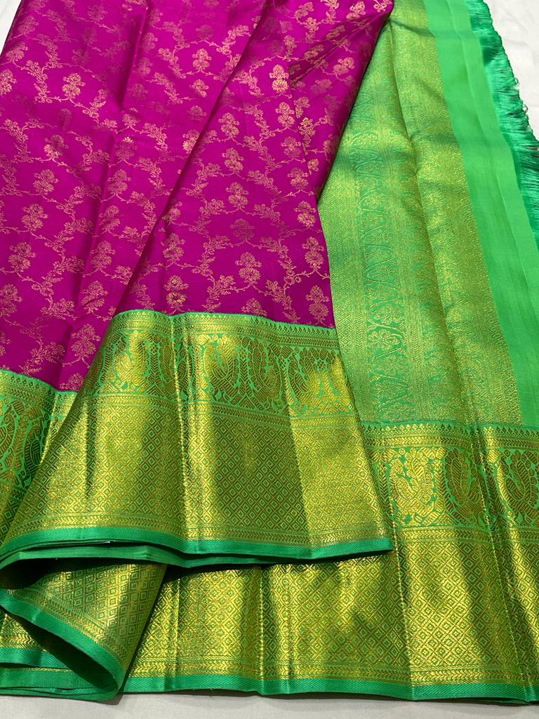 100 % pure kanchi silk saree handloom Double side korvai border ( Kuttu joint border 4 hands...