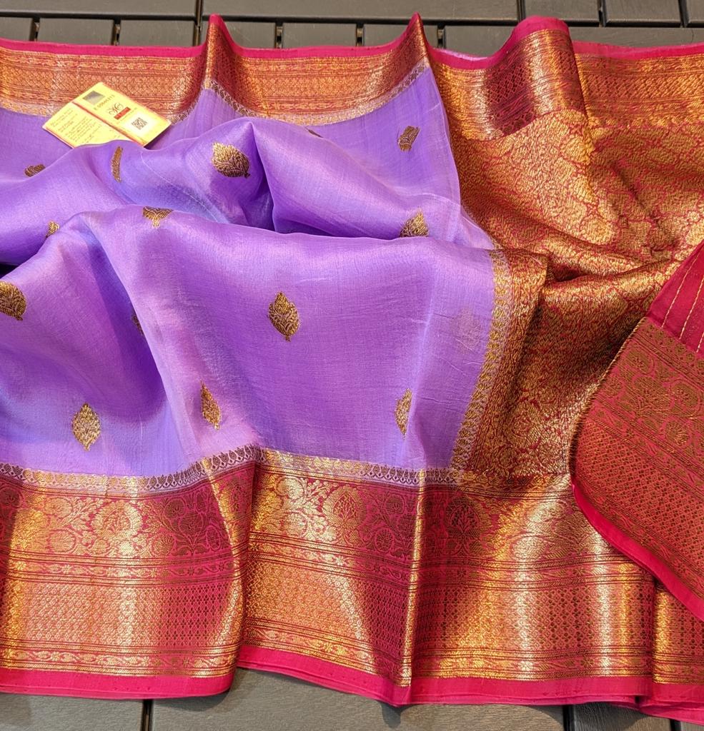 Kora organza *Pure Handloom bana kora*Silk saree with antique zari rich Pallu*Blouse with Border*Smooth & soft fabric*With...