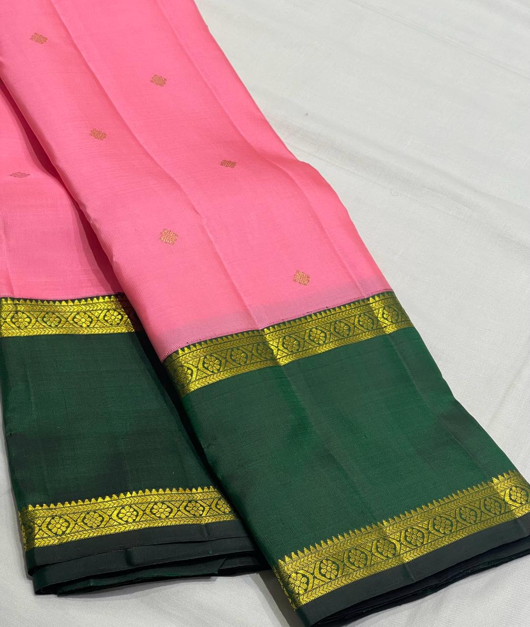 PINK/BOTTLE GREEN COMBITION PURE KANCHI SILK SAREE