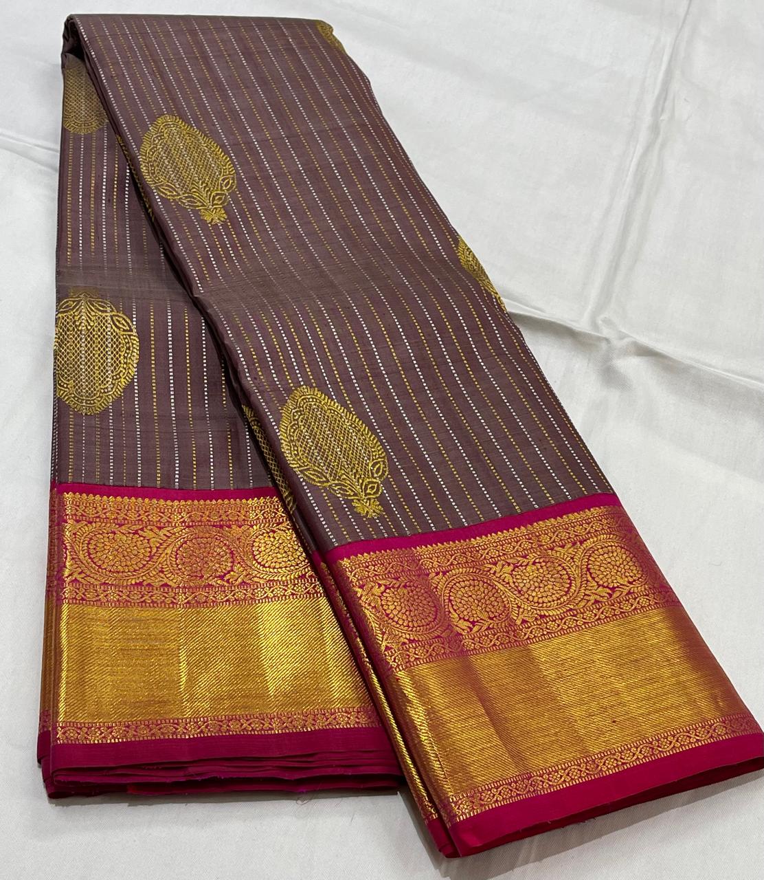 LITE BROWN/PINK  COLOUR ZARI COMBINITION PURE SILK SAREES