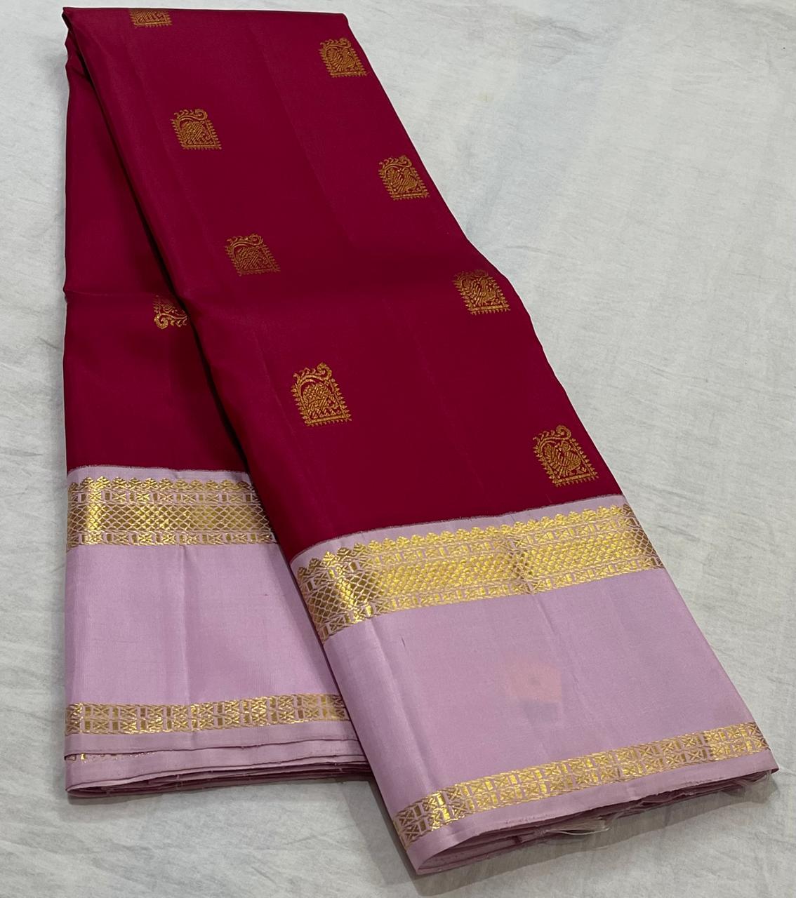 MAGENTA RED/LILAC  COLOUR  KANCHI SILK SAREE