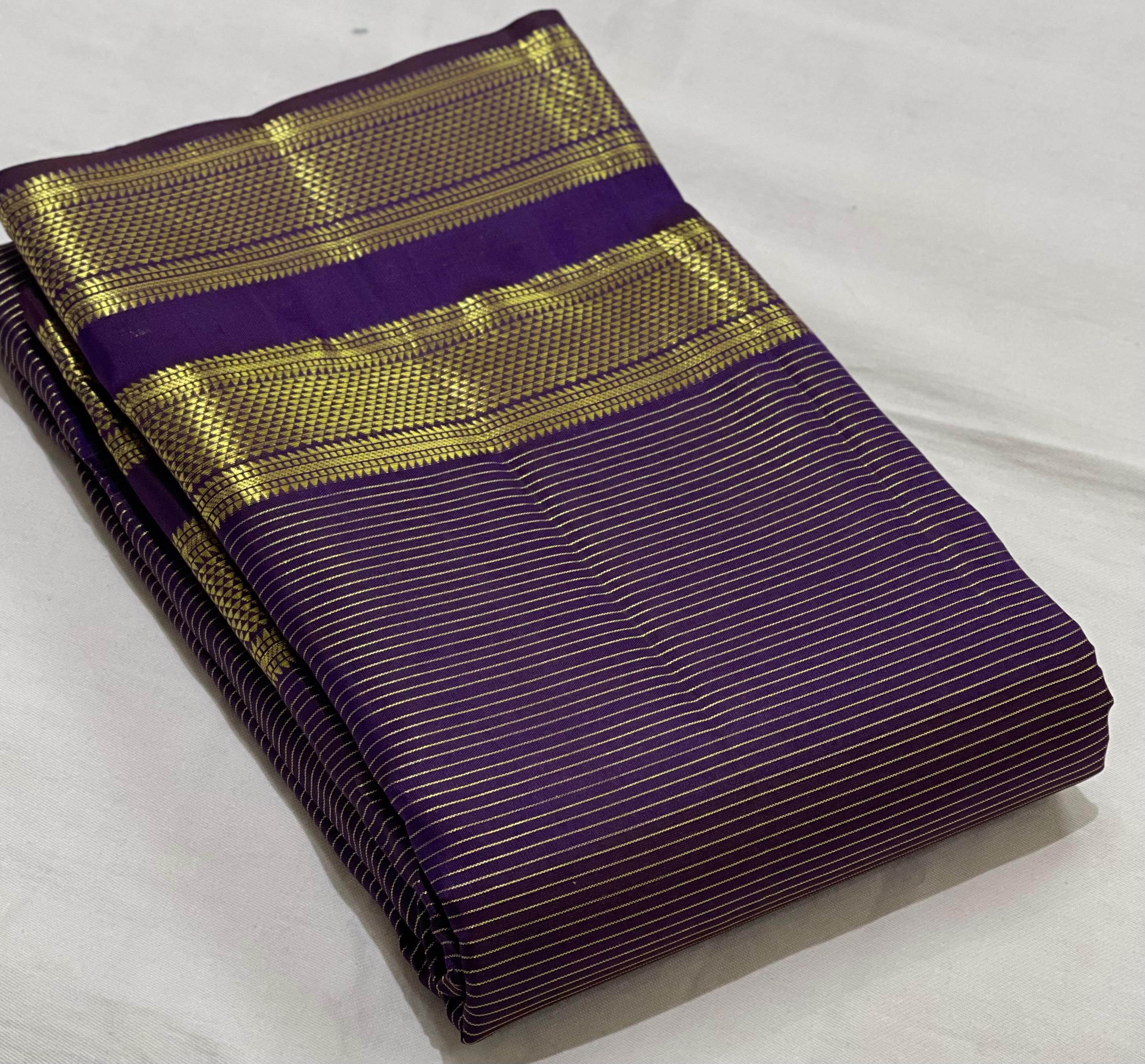 PURPLE COLOUR \GOLDBORDER  KANCHI SLIK SAREES