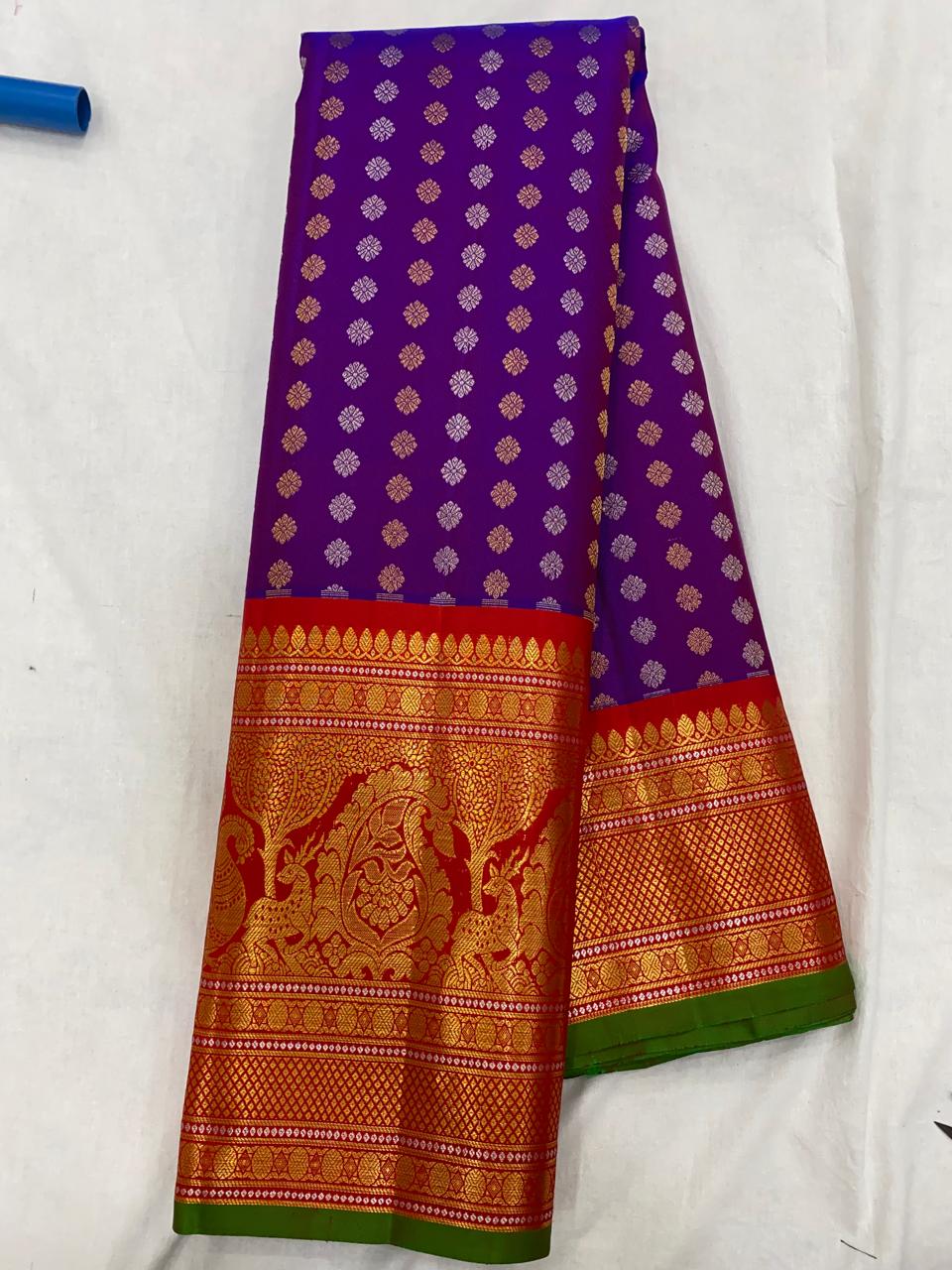 PURPLE COLOUR & RED BORDER GADWAL SILK SAREE