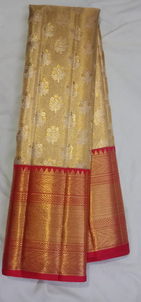 GOLD/RED BORDER COMBITION PURE KANCHI SILK SAREE