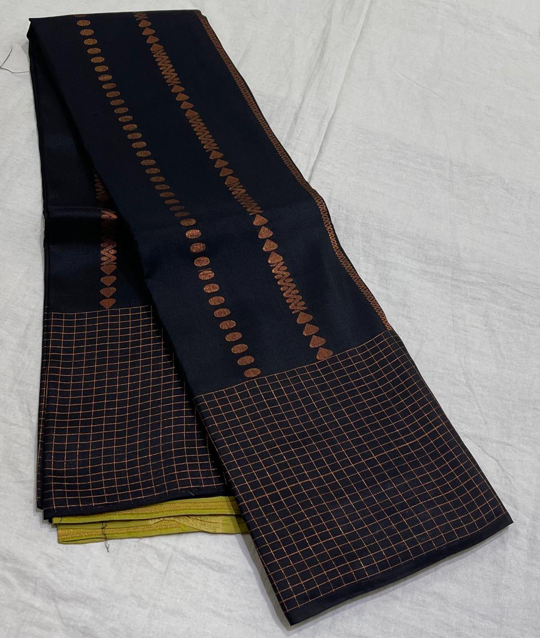 DARK BLUE/MEHANDI GREEN COLOUR COMBITION PURE KANCHI SILK SAREE