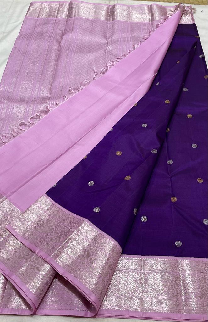 100 % pure kanchi silk saree handloom Double side korvai border ( Kuttu joint border 4 hands...