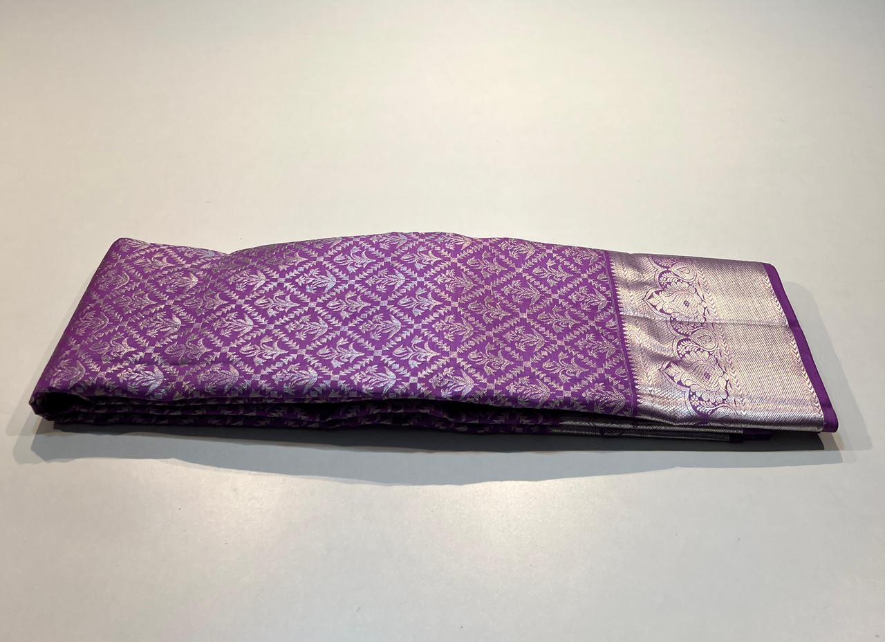 PURPLE COLOUR COMBITION PURE KANCHI SILK SAREE