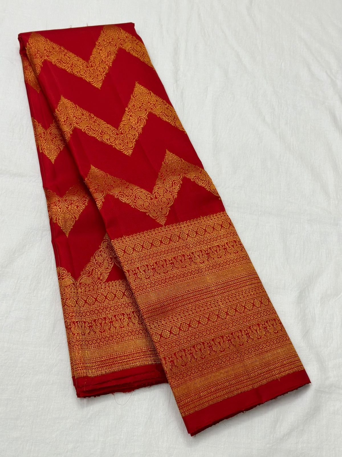 RED/GOLD BORDER COMBITION PURE KANCHI SILK SAREE