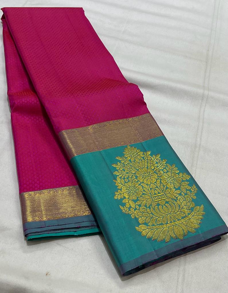 PINK/TORQUISE GREEN COMBITION PURE KANCHI SILK SAREE