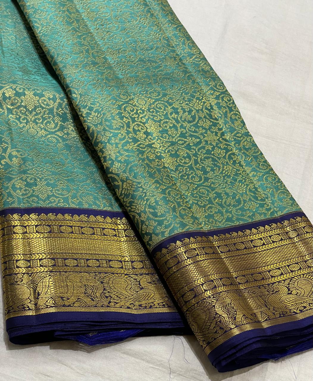 LITE BLUE/NAVY BLUE COLOUR COMBITION PURE KANCHI SILK SAREE