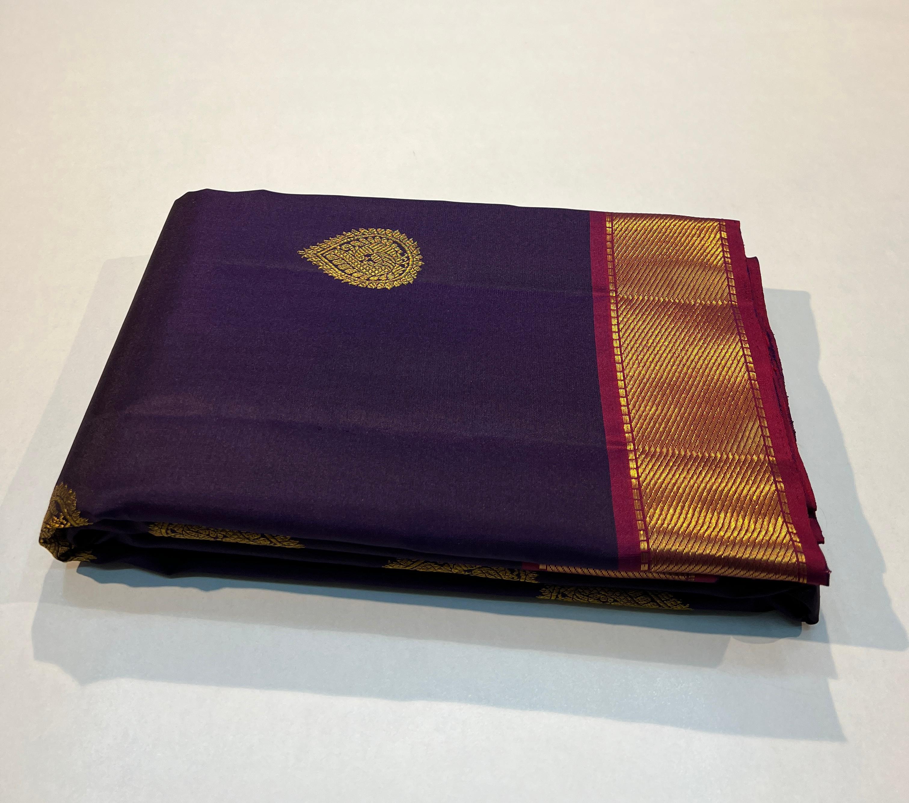 VOILET/MAGENTA PINK COLOUR ZARI BORDER COMBITION PURE KANCHI SILK SAREE