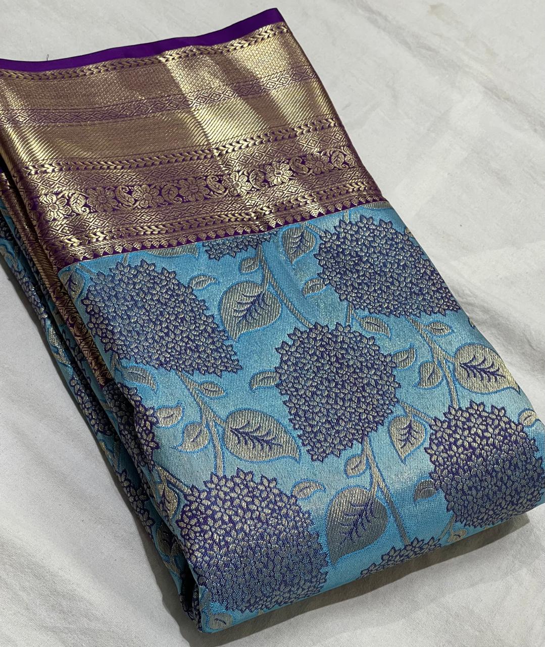 BLUE PURPLE GOLD KANCHI SILK SAREE