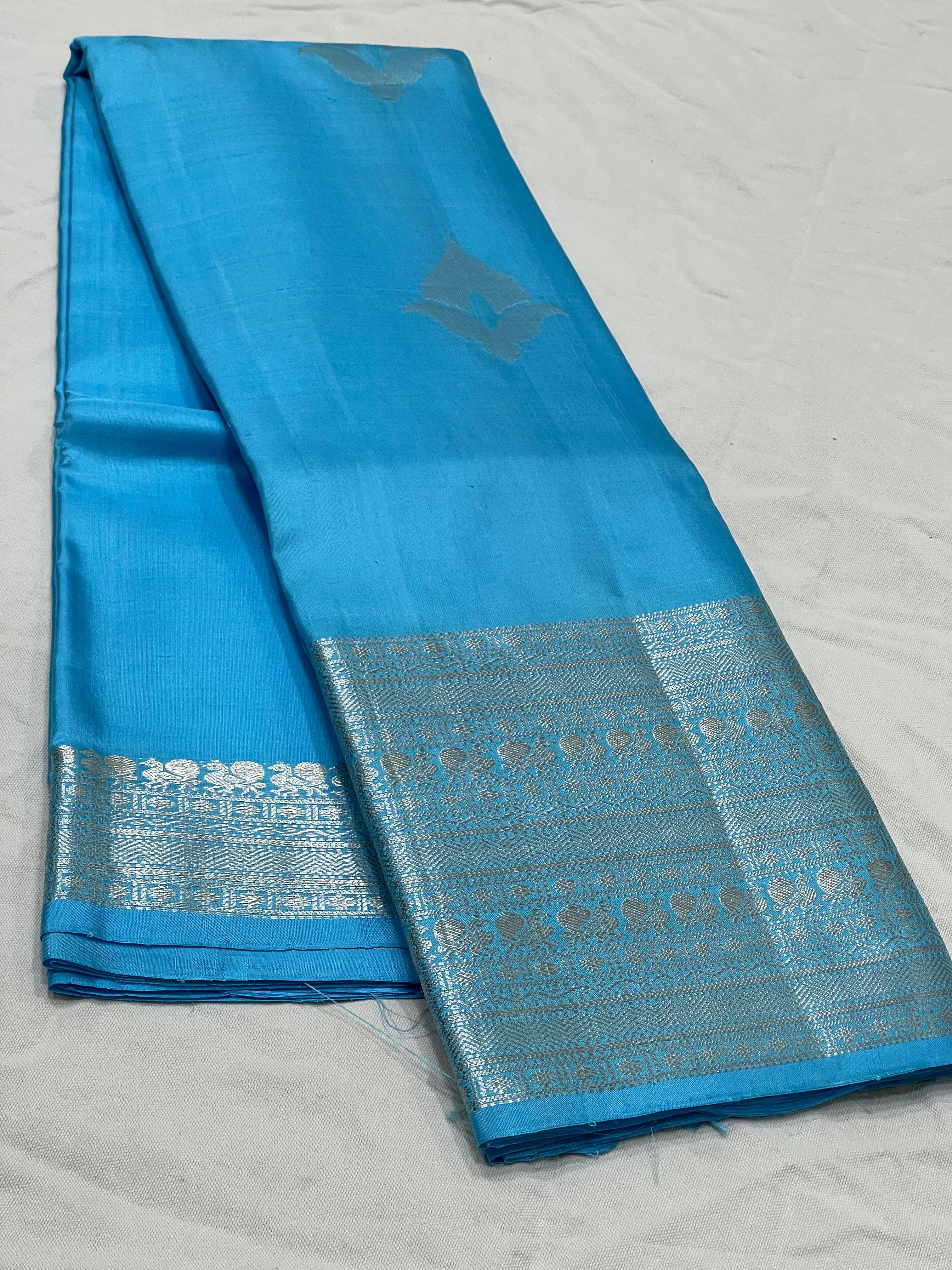 SKY BLUE  BORDER COMBITION PURE KANCHI SILK SAREE